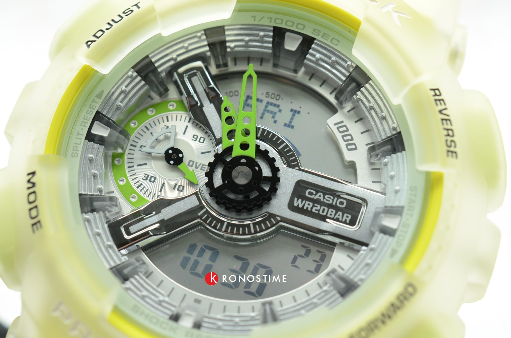 Японские мужские часы GA-110LS-7AER из коллекции G-Shock представлены в спортивном облачении, но их лаймовый оттенок позволяет продемонстрировать изысканную натуру.