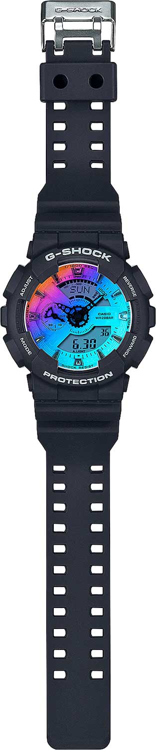 Casio GA-110SKE-8AER современные часы в ударопрочном корпусе, с удобным элементом управления в виде колеса прокрутки. Минеральное стекло, устойчивое к появлению царапин. Корпус часов выполнен в черной цветовой гамме, часы прочно удерживаются на руке браслетом из полимерного пластика. Часы GA-110SKE-8AER снабжены множеством дополнительных функций - повтор будильника, автоматический календарь. Ежечасный сигнал, повтор сигнала будильника, мировое время. Водонепроницаемость часов до 200 метров. Магнитоустойчивые. Элемент питания CR1220, точность хода +\- 15 сек.в месяц.