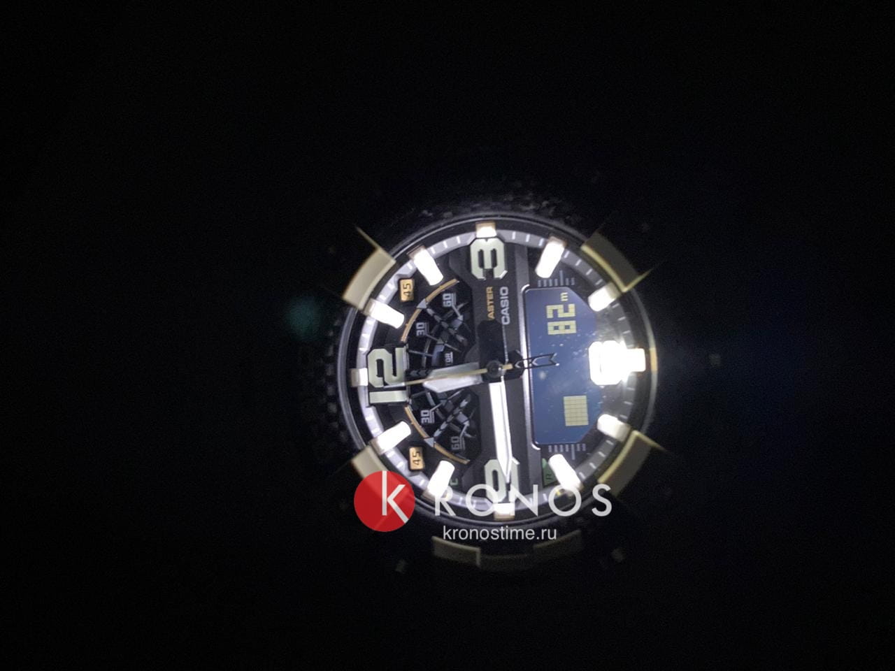 Аксессуар Limited Edition дополнен полимерным ремешком со стальным держателем, украшенным гербом Британской армии. Модель получила камуфляжную расцветку Multi-Terrain Pattern, символизирующую наземное подразделение Британской армии. Наручные часы изготовлены при участии британских военных, что сделало их пригодными для работы в экстремальных и суровых условиях. Этого удалось достичь благодаря двойной задней крышке, технологии Carbon Core GuardCarbon Core Guard Новейшая структура корпуса, разработанная Casio. Полиуретановая пластина дополнительно усилена карбоновыми вставками, что придаёт специальную защиту от механических повреждений. Карбон отличается лёгкостью и прочностью.: защитная карбоновая структура, трёхслойный безельБезельВнешний ободок, закрепляющий стекло. В спортивных часах так называется поворотное кольцо с делениями на циферблате, выполняет роль таймера – замеряет отрезки времени на шкале. Неподвижный безель – элемент декора. Однонаправленно вращающийся безель на дайверских часах позволяет фиксировать моменты погружения и выныривания на поверхность. с карбоновыми волокнами. Впечатляет повышенная грязе- и пылеустойчивость. Часы поставляются в камуфляжном кейсе, дополненным гербом. Японский кварцевый механизм работает об батарейки, рассчитанной на 2 года службы. Циферблат защищён минеральным стеклом, устойчивым к царапинам. Используется светодиодСветодиодная подсветкаСветодиодная или LED-подсветка обеспечивает появление яркого холодного свечения за счёт LED-элементов - маленьких лампочек. Они потребляют минимальное количество энергии, чаще всего можно встретить 1 светодиод, в нижней части циферблата. для освежения циферблата, электролюминесцентная подсветкаЭлектролюминесцентная подсветкаЭлектролюминесцентная панель устанавливается под ЖК-экраном часов, при нажатии кнопки электричество преобразуется в свет за счёт подачи напряжения на атомы фосфора, такой тип подсветки позволяет освещать весь циферблат. – для дисплеев. Функции: высотомер, барометр, компас, термометр, график восхода и заката солнца, BluetoothBluetoothСовременная технология, позволяющая синхронизировать часы с телефоном и переносить данные. Часы с Bluetooth расширяют возможности вашего смартфона и делают его использование ещё более удобным., поиск телефона, будильник, шагомер. Габариты: 55,4 x 53,1 x 19,3 мм.