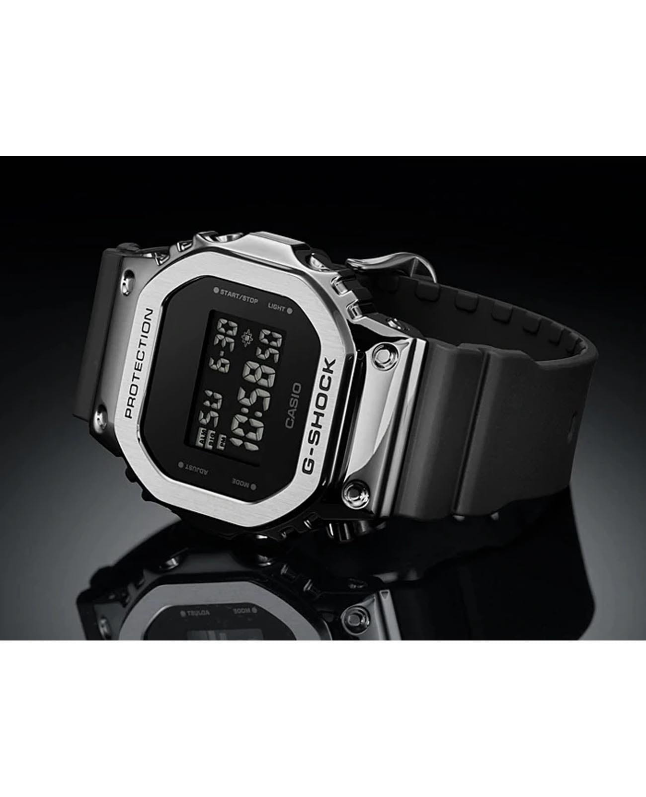 Японские ударопрочныеУдаропрочный корпусМеханизм заключён в корпус, выполненный из современных материалов, устойчивых к ударам, механическим повреждениям и падению с высоты: инновационный пластик, карбон, нержавеющая сталь, титан. мужские часы-хронографХронографФункция позволяет измерять отрезки времени с особой точностью: часы, минуты, секунды. Верным признаком хронографа является наличие на циферблате 3 дополнительных окошек-счётчиков. Casio G-Shock GM-5600U-1DR в стальном корпусе. Минеральное стеклоМинеральное стеклоМинеральное стекло представляет собой искусственно выращенный минерал кварца. Такое стекло отличается особой устойчивостью к повреждениям и царапинам. Уступает по некоторым качествам сапфировому стеклу. устойчивое к появлению царапин, обладающее высокой прозрачностью. Ударопрочный корпусУдаропрочный корпусМеханизм заключён в корпус, выполненный из современных материалов, устойчивых к ударам, механическим повреждениям и падению с высоты: инновационный пластик, карбон, нержавеющая сталь, титан. защищает механизм от ударов и вибрации. Электролюминесцентная подсветкаЭлектролюминесцентная подсветкаЭлектролюминесцентная панель устанавливается под ЖК-экраном часов, при нажатии кнопки электричество преобразуется в свет за счёт подачи напряжения на атомы фосфора, такой тип подсветки позволяет освещать весь циферблат. освещает весь циферблат. Включение/выключение звукового сигнала нажатия кнопки. 12/24-часовой формат времени. Мировое время Мировое время Полезное часовое усложнение, отображающее время в основных городах и известных областях по всему миру, оно связано с часовыми поясами, удобно для путешественников и бизнесменов. 31 часовой пояс (48 городов + всемирное координированное время), переход на летнее время вкл./выкл. СекундомерСекундомерСекундоме́р — прибор, способный измерять интервалы времени с точностью до долей секунды.. ТаймерТаймерОтсчитывает секунды в обратном направлении в заданном интервале времени.. 5 ежедневных будильниковБудильникБуди́льник — часы, в заданный момент времени подающие звуковой, световой и/или в редких случаях другой сигнал.. Почасовой сигнал времени. Класс водозащиты: 200 метров, позволит плавать, нырять и заниматься другими водными видами спорта. Ремешок из полимерного материала на стандартной застежке.