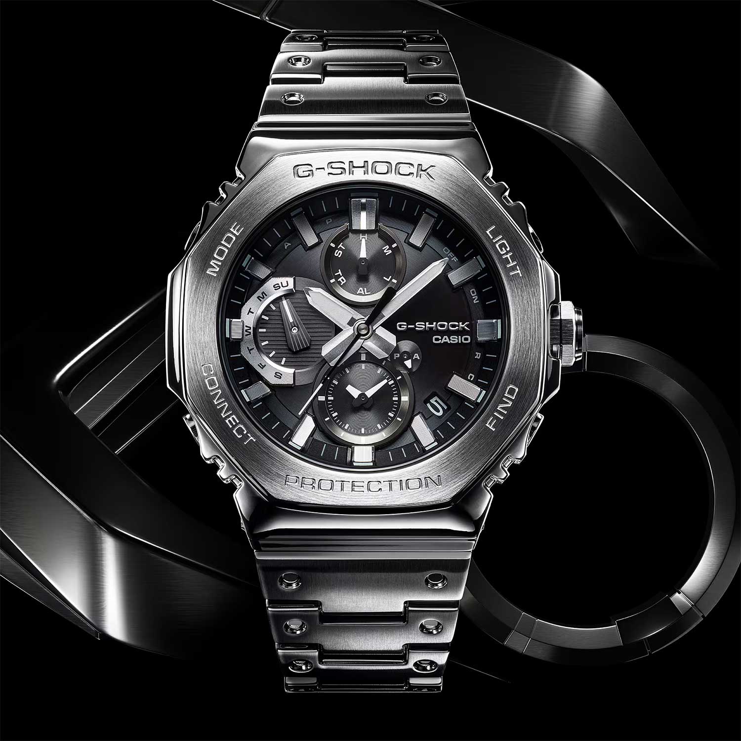 Модель Casio G-SHOCK GMC-B2100D-1A сочетает элегантность металлического корпуса и передовые технологии. Восьмиугольный безельБезельВнешний ободок, закрепляющий стекло. В спортивных часах так называется поворотное кольцо с делениями на циферблате, выполняет роль таймера – замеряет отрезки времени на шкале. Неподвижный безель – элемент декора. Однонаправленно вращающийся безель на дайверских часах позволяет фиксировать моменты погружения и выныривания на поверхность., вдохновленный оригинальной моделью DW-5000C 1983 года, придает часам современный минималистичный стиль. Корпус и браслет изготовлены из нержавеющей стали, а амортизирующие элементы из мелкозернистой смолы защищают механизм от ударов и вибраций, обеспечивая ударопрочностьУдаропрочный корпусМеханизм заключён в корпус, выполненный из современных материалов, устойчивых к ударам, механическим повреждениям и падению с высоты: инновационный пластик, карбон, нержавеющая сталь, титан.. Часы оснащены солнечным питанием Tough SolarTough SolarТехнология основана на подзарядке аккумулятора от источника солнечного света, специальная панель улавливает солнечные лучи и преобразует их в энергию для работы часов. Достаточно пары минут нахождения на солнце для функционирования часов в течении суток., которое позволяет заряжать аккумулятор от солнечного света, а также Bluetooth®-синхронизациейBluetoothСовременная технология, позволяющая синхронизировать часы с телефоном и переносить данные. Часы с Bluetooth расширяют возможности вашего смартфона и делают его использование ещё более удобным., обеспечивающей автоматическую корректировку времени и управление настройками через приложение CASIO WATCHES. Дополнительные функции включают мировое времяМировое время Полезное часовое усложнение, отображающее время в основных городах и известных областях по всему миру, оно связано с часовыми поясами, удобно для путешественников и бизнесменов. , секундомерСекундомерСекундоме́р — прибор, способный измерять интервалы времени с точностью до долей секунды., таймер обратного отсчетаТаймерОтсчитывает секунды в обратном направлении в заданном интервале времени., будильникиБудильникБуди́льник — часы, в заданный момент времени подающие звуковой, световой и/или в редких случаях другой сигнал. и светодиодную подсветкуСветодиодная подсветкаСветодиодная или LED-подсветка обеспечивает появление яркого холодного свечения за счёт LED-элементов - маленьких лампочек. Они потребляют минимальное количество энергии, чаще всего можно встретить 1 светодиод, в нижней части циферблата.. Водонепроницаемость до 200 метров делает модель подходящей для плавания и активного отдыха. Casio G-SHOCK GMC-B2100D-1A — это надежный и стильный аксессуар, идеально сочетающий прочность, технологичность и современный дизайн.
