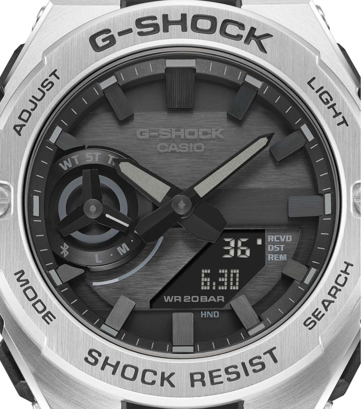 Японские мужские часы-хронографХронографФункция позволяет измерять отрезки времени с особой точностью: часы, минуты, секунды. Верным признаком хронографа является наличие на циферблате 3 дополнительных окошек-счётчиков. с минеральным стекломМинеральное стеклоМинеральное стекло представляет собой искусственно выращенный минерал кварца. Такое стекло отличается особой устойчивостью к повреждениям и царапинам. Уступает по некоторым качествам сапфировому стеклу. Casio G-Shock GST-B500D-1A1, кварцевый механизм с высокой точностью. Линейка GST-B500 объединяет в себе все самое необходимое, что нужно современным мужчинам. КарбоновыйКарбонОт «carbon», «carbone» - углерод, углепластик - полимерный композиционный материал из переплетённых под определенным углом между собой нитей углеродного волокна, применяется для изготовления лёгких, но прочных деталей. В часах часто используют для украшения циферблатов и ремешков. Так же карбон используется в изготовлении корпусов. Такие корпуса обладают антикоррозионным свойством, не поддаются электромагнитному излучению, обладают повышенной прочностью и противоударностью. каркас поглощает внешние удары, обеспечивая истинную прочность G-STEEL, а удобная посадка на запястье добавляет комфорта. Уменьшенная защита кнопок позволила создать тонкие, но в то же время широкие кнопки, которые легко нажимать. БезельБезельВнешний ободок, закрепляющий стекло. В спортивных часах так называется поворотное кольцо с делениями на циферблате, выполняет роль таймера – замеряет отрезки времени на шкале. Неподвижный безель – элемент декора. Однонаправленно вращающийся безель на дайверских часах позволяет фиксировать моменты погружения и выныривания на поверхность. подвергался многократной обработке для создания исключительной металлической текстуры, видимой под любым углом, что позволяет добиться изысканного вида. Питание от солнечной энергии Tough SolarTough SolarТехнология основана на подзарядке аккумулятора от источника солнечного света, специальная панель улавливает солнечные лучи и преобразует их в энергию для работы часов. Достаточно пары минут нахождения на солнце для функционирования часов в течении суток. солнечные батарейки большой мощности, индикатор заряда батареи. Функция автоматического сохранения энергии. Время работы аккумулятора без подзарядки приблизительно 7 месяцев, при включенной функции сохранения энергии приблизительно 18 месяцев. Механизм часов помещен в корпус из прочного материала, который надежно защищает от внешних воздействий, от ударов и вибрации. Carbon Core GuardCarbon Core Guard Новейшая структура корпуса, разработанная Casio. Полиуретановая пластина дополнительно усилена карбоновыми вставками, что придаёт специальную защиту от механических повреждений. Карбон отличается лёгкостью и прочностью. объединяет корпус и заднюю крышку в единый карбоновый моноблок. Ударопрочный корпусУдаропрочный корпусМеханизм заключён в корпус, выполненный из современных материалов, устойчивых к ударам, механическим повреждениям и падению с высоты: инновационный пластик, карбон, нержавеющая сталь, титан. из стали и полимерного материала защищает механизм от ударов и вибрации. Двойная светодиодная белая подсветка Super Illuminator с функцией Afterglow, одновременно подсвечивается аналоговый циферблат и цифровой дисплей. Све