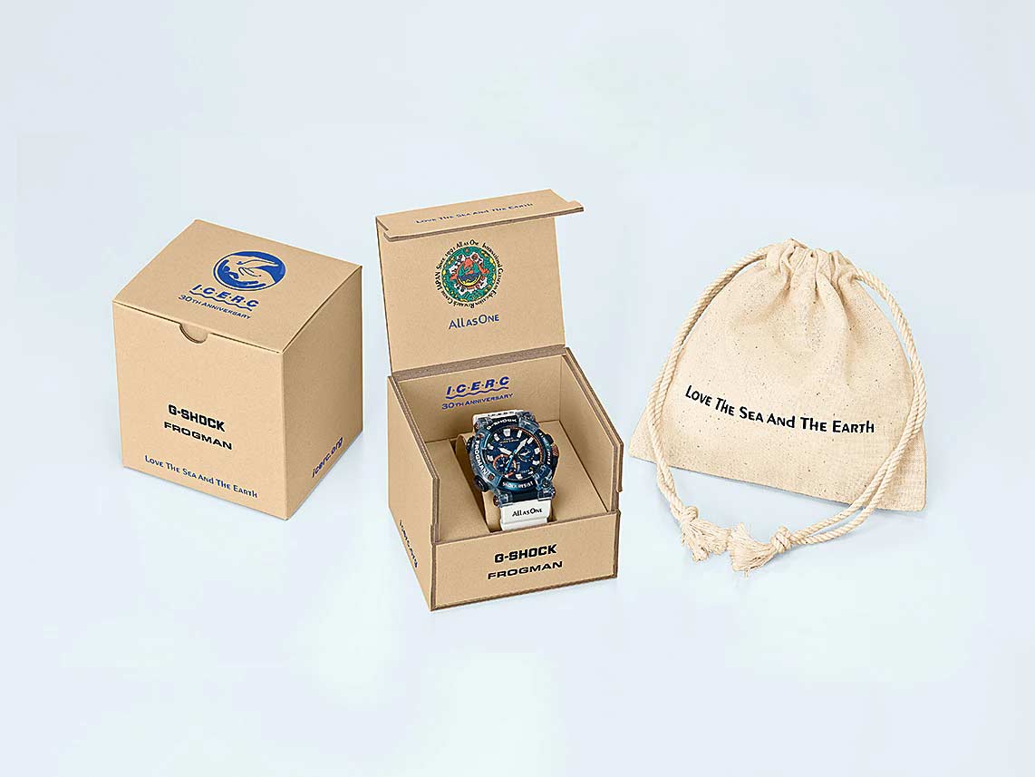 Новика часов Frogman создана не только для профессиональных дайверов, но и для простых любителей морских глубин. G-Shock Frogman. Модель создана в честь 30-летия ICERC Japan (Международного центра исследований образования китообразных). На задней крышке выгравирован девиз «Love The Sea And The Earth» (Любите Море и Землю.) Питание от солнечной энергии Tough Solar - солнечные батарейки большой мощности, индикатор заряда батареи. Функция автоматического сохранения энергии. Время работы аккумулятора без подзарядки до 5 месяцев, при включенной функции сохранения энергии до 30 месяцев. Противоударный корпус защищает механизм от ударов и вибрации. Ударопрочная конструкция Carbon Core Guard объединяет корпус и заднюю крышку в единый карбоновый моноблок. Защищены от магнитных полей. Циферблат подсвечивается ярким светодиодом. Послесвечение. Цвет подсветки: белый. Необритовое светонакопительное покрытие обеспечивает длительное послесвечение в темноте даже после кратковременного нахождения на свету.