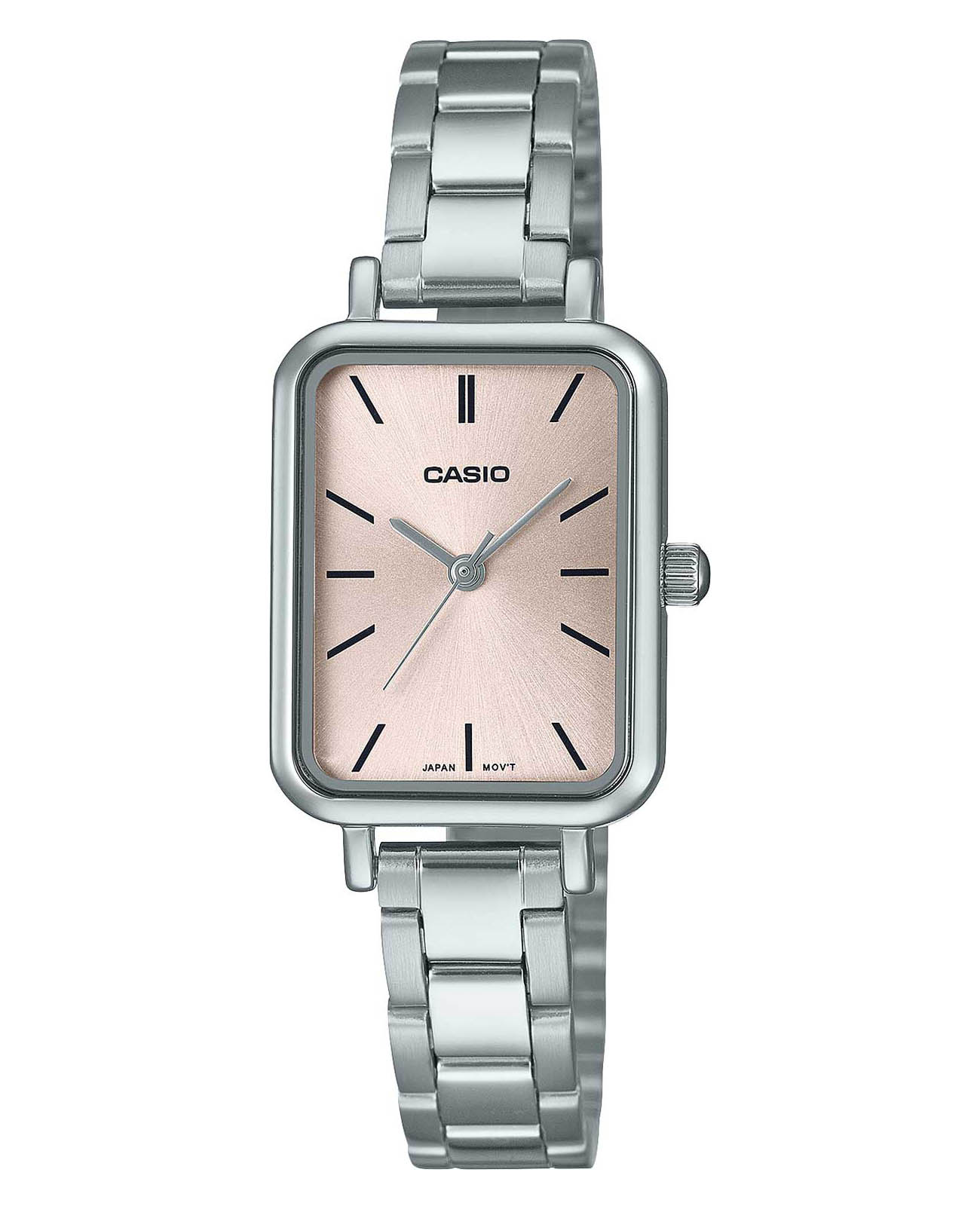 Японские женские часы LTP-V009D-4E с минеральным стекломМинеральное стеклоМинеральное стекло представляет собой искусственно выращенный минерал кварца. Такое стекло отличается особой устойчивостью к повреждениям и царапинам. Уступает по некоторым качествам сапфировому стеклу. из коллекции LTP изящно смотрятся на запястье, они привлекают классическим исполнением и правильной геометрией. Минималистичная модель станет отличным решением для любого случая: на работу, переговоры с деловыми партнёрами, прогулку с друзьями или праздничный вечер. Отсутствуют лишние детали, что позволяет часам быть актуальными на долгие годы. Корпус выполнен из стали, отличающейся долговечностью и устойчивостью к повреждениям и царапинам. Модель комплектуется надёжным механизмом, точность хода которого составляет +/- 20 сек/мес. Стальной браслет на раскладной застёжкеРаскладная застёжкаТакой тип застёжки используется только на браслетах из металла. Она никогда не раскрывается полностью, происходит разделение на 2 и более частей. Раскладывающая застёжка снизит вероятность потери часов к минимуму..