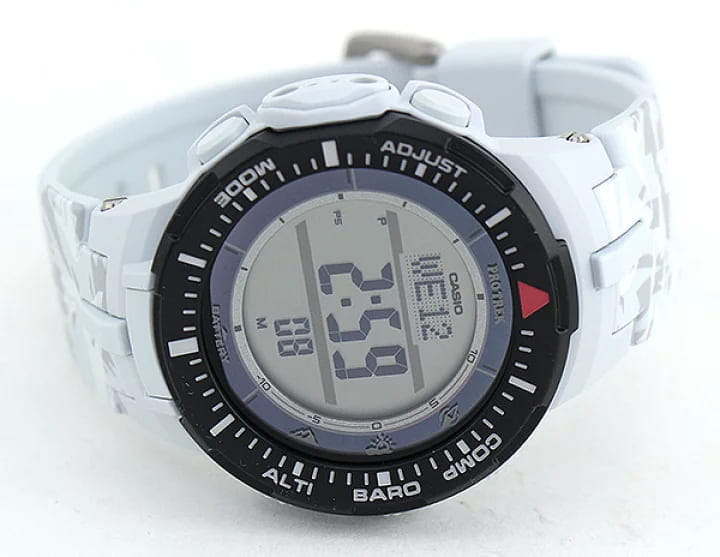 Мировое время включает 48 городов (31 часовой пояс), всемирное координированное время (UTC). Функция включения/отключения летнего времени. 12-ти и 24-х часовой формат времени. Время восхода и захода Солнца. Технология Triple Sensor позволяет точно и легко определять сторону света, температуру и атмосферное давление. Встроенный цифровой компас. Высотомер - встроенный датчик барометрического давления с возможностью вывода результатов в единицах высоты над уровнем моря. График набора высоты. Память данных высотометра - каждая из записей состоит из измеренной абсолютной высоты, даты и времени. SPLIT-хронограф. Секундомер с точностью показаний 1/10с и временем измерения 1000ч. Таймер обратного отсчета от 1 минуты до 24 часов.