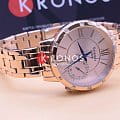 Аксессуар акцентирует внимание на календарном окошке, оформленном стразами Swarovski, стильно смотрятся римские цифры. Японский кварцевый механизм работает от батарейки, срок её службы – 3 года. Корпус и браслет выполнены из антикоррозионной стали 316L с IP-финишемIP-покрытиеМетод ионного напыления. Демонстрирует повышенную устойчивость к истиранию, окислению и химическим веществам. Под воздействием высокого давления и температуры около 1500°C молекулы металла надёжно соединяются с частицами корпуса часов.. Минеральное стекло отличается прочностью и устойчивостью к царапинам.