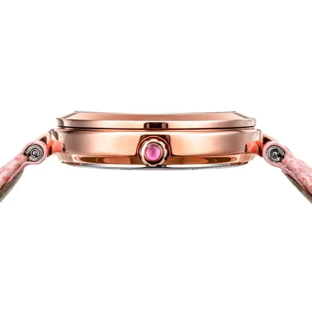 Утончённая модель привлекает лёгким оттенком винтажа благодаря изящным римским цифрам. Наручные часы позволят создать образ романтичной натуры, станут идеальным дополнением к повседневному образу. Розовый циферблат имеет миниатюрные счётчики для отображения времени в 12/24-ом формате, индикации числа и дня недели. В качестве украшения используются стразы Swarovski. Ремешок из натуральной кожи. Ударопрочный корпусУдаропрочный корпусМеханизм заключён в корпус, выполненный из современных материалов, устойчивых к ударам, механическим повреждениям и падению с высоты: инновационный пластик, карбон, нержавеющая сталь, титан.. Водонепроницаемость 5 бар. Минеральное стекло. Габариты: 41,3 x 34 x 9,2 мм.
