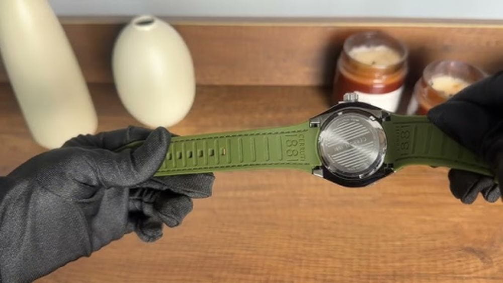 Cerruti 1881 CIWGN0042902 — выразительные мужские часы с характером, созданные в духе современной урбанистики. Массивный корпус из нержавеющей стали с серым матовым PVD-покрытиемPVDУльтратонкое покрытие наносится в технике вакуумного напыления, сочетает в себе нитрид титана особой прочности со слоем золота или оксида хрома. Несёт в себе декоративную или защитную функцию. и геометричным безелемБезельВнешний ободок, закрепляющий стекло. В спортивных часах так называется поворотное кольцо с делениями на циферблате, выполняет роль таймера – замеряет отрезки времени на шкале. Неподвижный безель – элемент декора. Однонаправленно вращающийся безель на дайверских часах позволяет фиксировать моменты погружения и выныривания на поверхность. с PVD-покрытиемPVDУльтратонкое покрытие наносится в технике вакуумного напыления, сочетает в себе нитрид титана особой прочности со слоем золота или оксида хрома. Несёт в себе декоративную или защитную функцию. подчёркивает силу и уверенность дизайна. Глубокий зелёный циферблат с горизонтальной текстурой дополняют чёткие метки и стрелки с люминесцентным покрытиемЛюминесцентное покрытиеПозволяет считывать показания времени в темноте. Производители наносят на стрелки, часовые индексы, безель или поверхность циферблата светонакопительный состав, дающий холодное свечение., обеспечивающие отличную читаемость даже в сумерках. Функциональное оформление включает окно даты на позиции «3 часов», подчёркивающую практичный характер модели. Прочное минеральное стеклоМинеральное стеклоМинеральное стекло представляет собой искусственно выращенный минерал кварца. Такое стекло отличается особой устойчивостью к повреждениям и царапинам. Уступает по некоторым качествам сапфировому стеклу. защищает циферблат, а эластичный силиконовый ремешок в тон циферблату обеспечивает комфорт и современный спортивный акцент. Cerruti 1881 — стильный аксессуар для мужчин, ценящих надёжность, функциональность и безупречное чувство стиля.