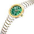 Cerruti 1881 CIWLG0073804 — элегантные женские часы, сочетающие классический стиль и сияние итальянской роскоши. Корпус из нержавеющей стали и браслет с частичным благородным золотым IP-покрытиемIP-покрытиеМетод ионного напыления. Демонстрирует повышенную устойчивость к истиранию, окислению и химическим веществам. Под воздействием высокого давления и температуры около 1500°C молекулы металла надёжно соединяются с частицами корпуса часов., подчёркивающим изысканность модели. БезельБезельВнешний ободок, закрепляющий стекло. В спортивных часах так называется поворотное кольцо с делениями на циферблате, выполняет роль таймера – замеряет отрезки времени на шкале. Неподвижный безель – элемент декора. Однонаправленно вращающийся безель на дайверских часах позволяет фиксировать моменты погружения и выныривания на поверхность. IP-покрытиемIP-покрытиеМетод ионного напыления. Демонстрирует повышенную устойчивость к истиранию, окислению и химическим веществам. Под воздействием высокого давления и температуры около 1500°C молекулы металла надёжно соединяются с частицами корпуса часов. и гравировкой логотипа Cerruti 1881 придаёт образу фирменную индивидуальность, а зеленый циферблат с лучевой текстурой и кристаллическими метками создаёт игру света и глубины. Прочное минеральное стеклоМинеральное стеклоМинеральное стекло представляет собой искусственно выращенный минерал кварца. Такое стекло отличается особой устойчивостью к повреждениям и царапинам. Уступает по некоторым качествам сапфировому стеклу. защищает поверхность от царапин, а металлический браслет с плавным переходом звеньев оснащён застёжкой «бабочка»Застёжка "бабочка"Такой вид застёжки дополняется предохранителями, помогающими избежать случайного раскрытия браслета. Обладают изящным исполнением. , обеспечивающей надёжность и комфорт при ношении. Cerruti 1881 — воплощение женственности и утончённого вкуса, идеально подходящее для повседневной элегантности и особых случаев.