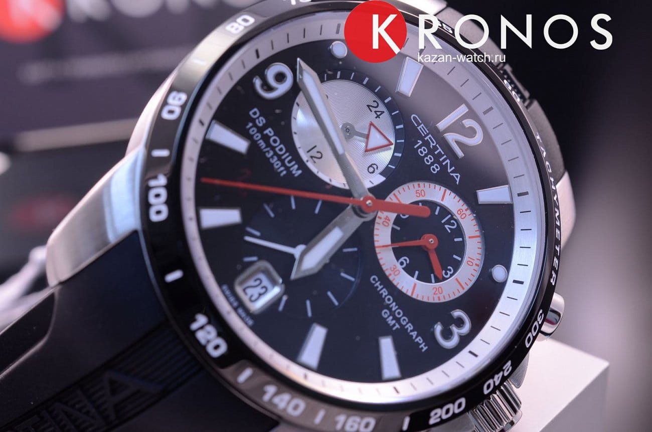 Наручные часы с каучуковым ремешком имеют крупную индикацию времени, на тёмном циферблате расположились счётчики в оригинальном оформлении. Кварцевый хронографХронографФункция позволяет измерять отрезки времени с особой точностью: часы, минуты, секунды. Верным признаком хронографа является наличие на циферблате 3 дополнительных окошек-счётчиков. разработан с реализацией технологии DS Concept DS ConceptDouble Security Concept, обозначает двойную надёжность и безупречную точность часов Certina. Двойная система защиты подразумевает обеспечение максимальной устойчивости к ударам и высоких показателей водонепроницаемости., благодаря чему модель отличается высокой ударопрочностью и водонепроницаемостью до 100 метров. Сапфировое стекло. БезельБезельВнешний ободок, закрепляющий стекло. В спортивных часах так называется поворотное кольцо с делениями на циферблате, выполняет роль таймера – замеряет отрезки времени на шкале. Неподвижный безель – элемент декора. Однонаправленно вращающийся безель на дайверских часах позволяет фиксировать моменты погружения и выныривания на поверхность. c PVD-покрытиемPVDУльтратонкое покрытие наносится в технике вакуумного напыления, сочетает в себе нитрид титана особой прочности со слоем золота или оксида хрома. Несёт в себе декоративную или защитную функцию.. Яркая люминесцентная подсветкаЛюминесцентное покрытиеПозволяет считывать показания времени в темноте. Производители наносят на стрелки, часовые индексы, безель или поверхность циферблата светонакопительный состав, дающий холодное свечение.. Секундомер, отображение даты, функция GMTGMTОтображение времени второго часового пояса.Такая функция особенно актуальна для путешественников и бизнесменов,которые общаются с людьми из разных стран,теперь вы всегда будете знать,какой час у вашего партнёра или близкого человека.. Диаметр корпуса: 42 мм.