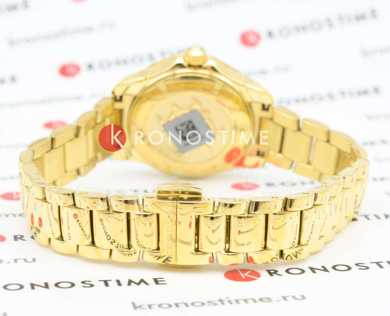 Компактный аксессуар создан по всем правилам дайверской тематики: вращающийся безельБезельВнешний ободок, закрепляющий стекло. В спортивных часах так называется поворотное кольцо с делениями на циферблате, выполняет роль таймера – замеряет отрезки времени на шкале. Неподвижный безель – элемент декора. Однонаправленно вращающийся безель на дайверских часах позволяет фиксировать моменты погружения и выныривания на поверхность., крупная индикация времени, завинчивающаяся заводная головка и задняя крышка. Стильно смотрится золотистый циферблат в сочетании с холодным блеском нержавеющей стали 316L с PVD-покрытиемPVDУльтратонкое покрытие наносится в технике вакуумного напыления, сочетает в себе нитрид титана особой прочности со слоем золота или оксида хрома. Несёт в себе декоративную или защитную функцию.. Часы оснащены швейцарским кварцевым калибром ETA F04.412 Precidrive™Precidrive™Инновационный кварцевый механизм Certina. Часы, оснащённые этим швейцарским калибром, приравниваются к точности к сертифицированным хронометрам, точность хода составляет +/-10 секунд в год., точность хода которого отмечена официальным сертификатом COSCСертификат COSCОфициальный сертификат, подтверждающий то, что часы ходят с особо высокой точностью. Для получения документа часы подвергаются тестовым испытаниям, разработанным швейцарским институтом тестирования хронометров COSC. Допустимая норма для механических часов -4/+6 секунд в день, для кварцевых моделей +/- 0,07 секунд в день.. Модель отличается максимальной водонепроницаемостью 200 метров, сапфировое стекло дополнено антибликовым покрытием. Функции: отображение даты, индикатор EOLEOLПредставляет собой систему, уведомляющую владельца часов о необходимости замены элемента питания. За 2 недели до полного разряда батарейки секундная стрелка перестаёт ходить чётко и начинает перепрыгивать на 3-4 деления.. Диаметр корпуса: 29 мм.