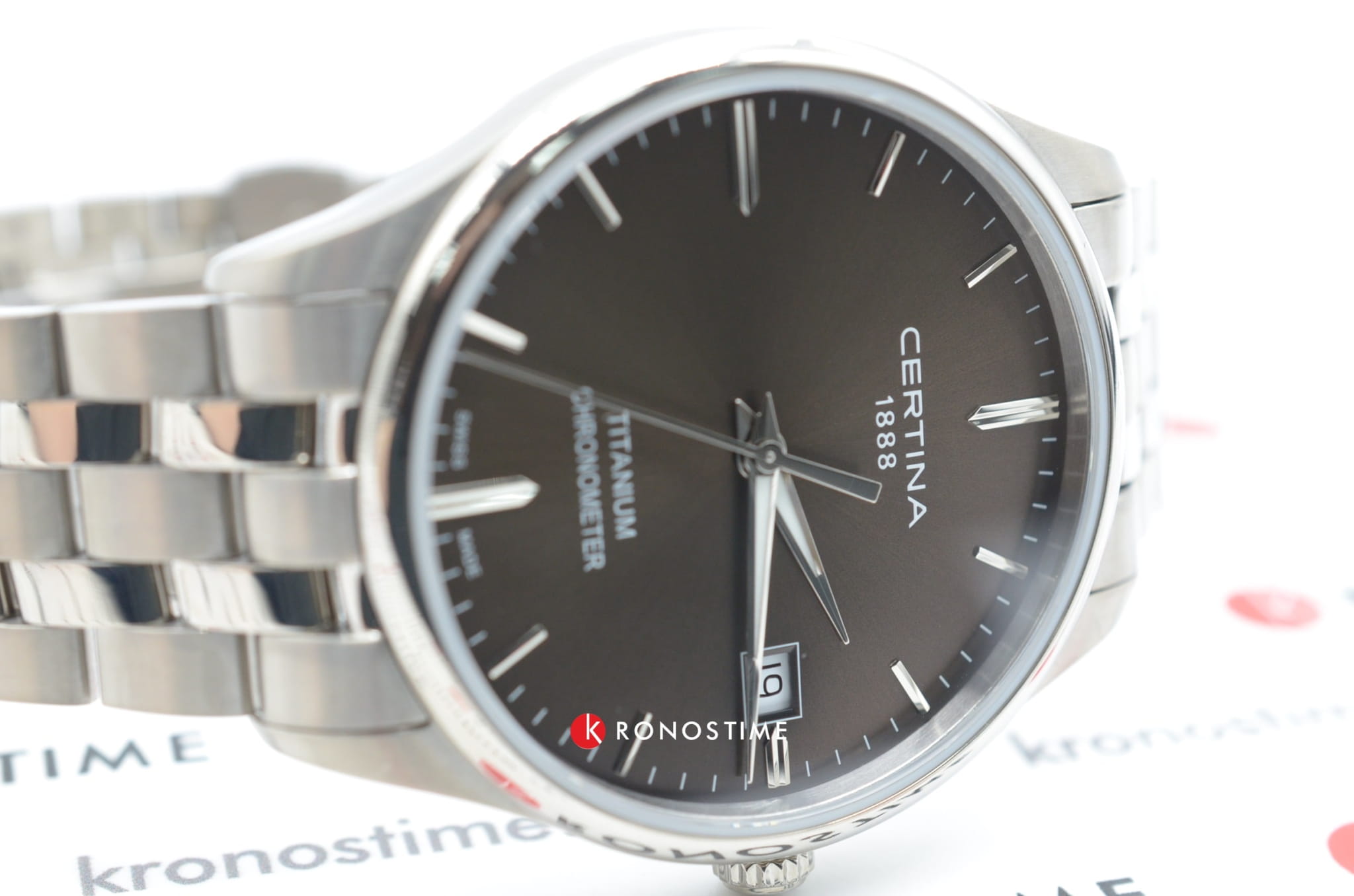 Стильный аксессуар с циферблатом кофейного оттенка в минималистичном оформлении охарактеризует вас как человека, который действительно разбирается в часах. Модель отличается повышенной точностью хода, это подтверждено официальным сертификатом хронометра COSCСертификат COSCОфициальный сертификат, подтверждающий то, что часы ходят с особо высокой точностью. Для получения документа часы подвергаются тестовым испытаниям, разработанным швейцарским институтом тестирования хронометров COSC. Допустимая норма для механических часов -4/+6 секунд в день, для кварцевых моделей +/- 0,07 секунд в день.. Часы обладают ударопрочным корпусомУдаропрочный корпусМеханизм заключён в корпус, выполненный из современных материалов, устойчивых к ударам, механическим повреждениям и падению с высоты: инновационный пластик, карбон, нержавеющая сталь, титан. и водонепроницаемостью до 10 бар - такие безупречные характеристики появились благодаря фирменной концепции DS ConceptDS ConceptDouble Security Concept, обозначает двойную надёжность и безупречную точность часов Certina. Двойная система защиты подразумевает обеспечение максимальной устойчивости к ударам и высоких показателей водонепроницаемости.. Для изготовления корпуса и браслета использовался титан, устойчивый к коррозии и воздействию магнитного поля. Швейцарский кварцевый механизм ETA F07.412 Precidrive™Precidrive™Инновационный кварцевый механизм Certina. Часы, оснащённые этим швейцарским калибром, приравниваются к точности к сертифицированным хронометрам, точность хода составляет +/-10 секунд в год.. Стекло из сапфира с антибликовым покрытием. Индикация числа, функция EOLEOLПредставляет собой систему, уведомляющую владельца часов о необходимости замены элемента питания. За 2 недели до полного разряда батарейки секундная стрелка перестаёт ходить чётко и начинает перепрыгивать на 3-4 деления.. Диаметр корпуса: 40,2 мм.