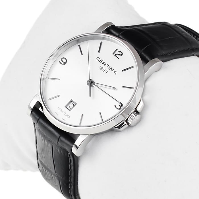 Женские швейцарские часы с сапфировым стеклом Certina DS Caimano C017.210.16.037.00, кварцевый механизм с высокой точностью. Сапфировое стекло устойчивое к появлению царапин, обладающее высокой прозрачностью. Класс водозащиты: 100 метров, позволит плавать, нырять и заниматься другими водными видами спорта. Корпус часов изготовлен из стали, серебристого цвета.