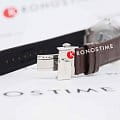 Коричневый кожаный ремешок с текстурой под крокодила и застёжкой-бабочкойЗастёжка "бабочка"Такой вид застёжки дополняется предохранителями, помогающими избежать случайного раскрытия браслета. Обладают изящным исполнением. подчёркивает утончённый стиль и комфортное ношение. Водонепроницаемость до 100 метров делает модель подходящей для активного образа жизни.