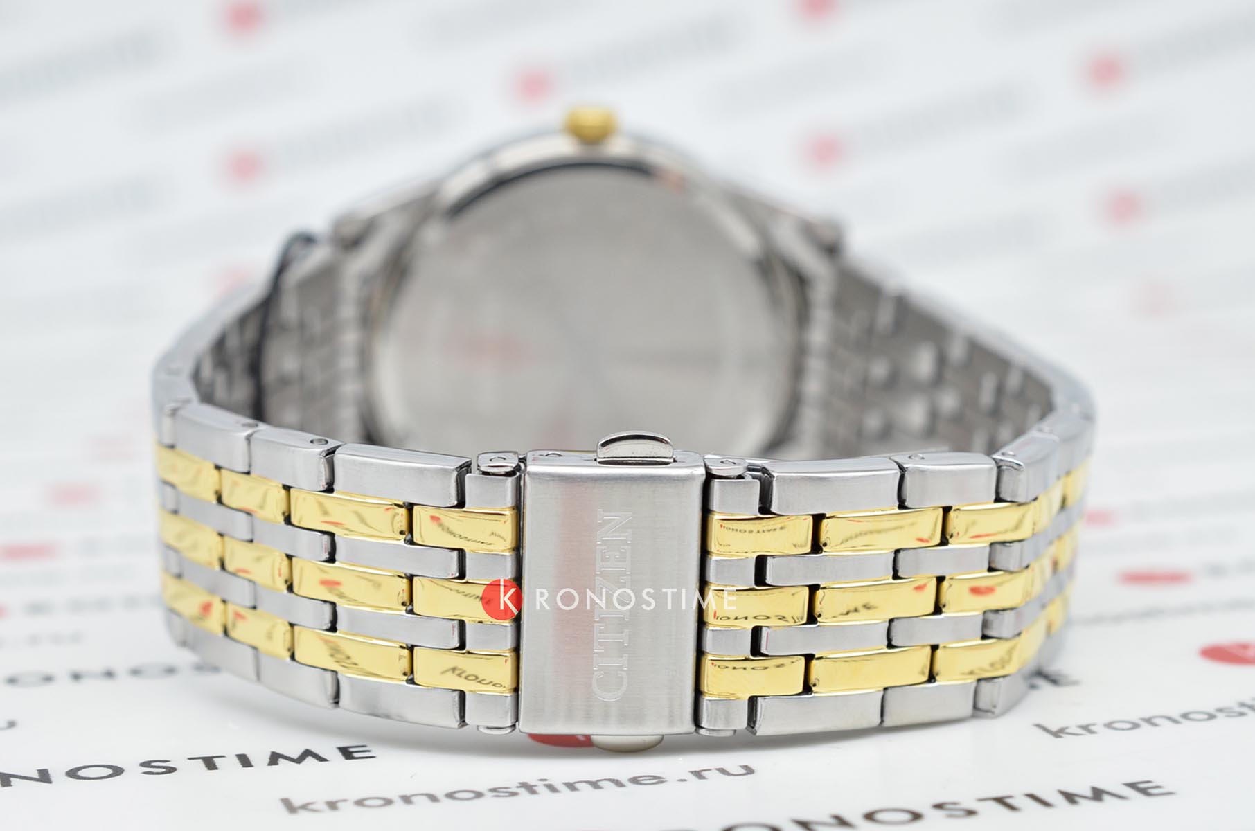 Часы Citizen BI5006-81L сочетают в себе японское качество, современный дизайн и надежность кварцевого механизма Citizen G111. Круглый корпус диаметром 39 мм выполнен из прочной нержавеющей стали, что обеспечивает долговечность и стильный внешний вид. Синий циферблат украшен метками в виде штрихов, а также дополнен окошком календаря с отображением даты и дня недели в позиции «3 часа». Стрелки с люминесцентным покрытиемЛюминесцентное покрытиеПозволяет считывать показания времени в темноте. Производители наносят на стрелки, часовые индексы, безель или поверхность циферблата светонакопительный состав, дающий холодное свечение., что обеспечивает отличную видимость в темноте. Минеральное стеклоМинеральное стеклоМинеральное стекло представляет собой искусственно выращенный минерал кварца. Такое стекло отличается особой устойчивостью к повреждениям и царапинам. Уступает по некоторым качествам сапфировому стеклу. защищает циферблат от царапин и повреждений. Рифленая заводная головка подчеркивает элегантность и практичность модели. Стальной браслет с частичным золотистым IP-покрытиемIP-покрытиеМетод ионного напыления. Демонстрирует повышенную устойчивость к истиранию, окислению и химическим веществам. Под воздействием высокого давления и температуры около 1500°C молекулы металла надёжно соединяются с частицами корпуса часов. оснащен надежной раскладной застёжкойРаскладная застёжкаТакой тип застёжки используется только на браслетах из металла. Она никогда не раскрывается полностью, происходит разделение на 2 и более частей. Раскладывающая застёжка снизит вероятность потери часов к минимуму., что обеспечивает комфортное ношение и подходит для любого случая. Водозащита до 50 метров позволяет не бояться случайных брызг и дождя.