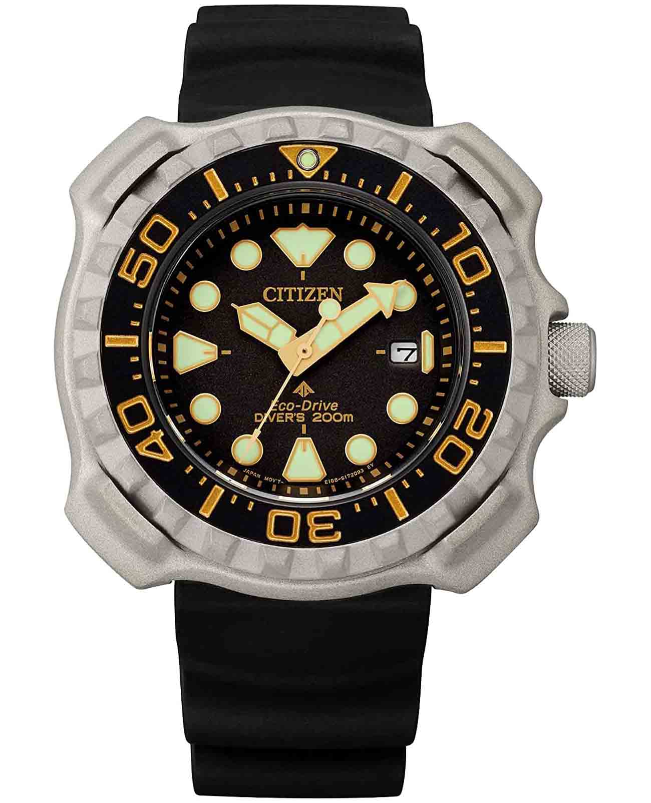 Мужские часы Citizen Promaster BN0220-16E дайверские часы станут верным спутником в вашей энергичной и спортивной жизни. Корпус из титана (Super Titanium) диаметром 47,9 мм идеально сбалансирован. Минеральное стеклоМинеральное стеклоМинеральное стекло представляет собой искусственно выращенный минерал кварца. Такое стекло отличается особой устойчивостью к повреждениям и царапинам. Уступает по некоторым качествам сапфировому стеклу. обеспечивает отличную защиту циферблата от царапин. Часы работают на основе кварцевого механизма, питание от солнечной энергии, запас энергии на 180 дней. Полиуретановый ремешок на стандартной застёжке идеально дополняют дизайн часов, обеспечивая комфортное ношение. Стрелки и метки на циферблате имеют люминесцентное покрытиеЛюминесцентное покрытиеПозволяет считывать показания времени в темноте. Производители наносят на стрелки, часовые индексы, безель или поверхность циферблата светонакопительный состав, дающий холодное свечение. позволяющее легко определять время даже в темноте. Титановый безельБезельВнешний ободок, закрепляющий стекло. В спортивных часах так называется поворотное кольцо с делениями на циферблате, выполняет роль таймера – замеряет отрезки времени на шкале. Неподвижный безель – элемент декора. Однонаправленно вращающийся безель на дайверских часах позволяет фиксировать моменты погружения и выныривания на поверхность. с Duratect MRK покрытием вращается в одном направлении. Функция индикации заряда (EOL) и предотвращения перезарядки. Окошко даты находится в положении 3 часа. Часы обладают впечатляющей водонепроницаемостью до 200WR, что делает их идеальными для плавания, ныряния и погружений с аквалангом.