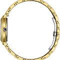 Часы Citizen EM1092-64D – это элегантная модель, созданная в Японии и сочетающая в себе современные технологии и изысканный дизайн. Надежный кварцевый механизм Citizen E031 с инновационной системой Eco-Drive работает от солнечной энергии и не требует замены батарейки, обеспечивая запас хода до 180 дней. Корпус и браслет часов выполнены из нержавеющей стали с золотым IP-покрытиемIP-покрытиеМетод ионного напыления. Демонстрирует повышенную устойчивость к истиранию, окислению и химическим веществам. Под воздействием высокого давления и температуры около 1500°C молекулы металла надёжно соединяются с частицами корпуса часов. и украшен тремя кристаллами, что придает аксессуару особое сияние. Перламутровый голубой циферблат с лаконичными метками защищен выпуклым сапфировым стекломСапфировое стеклоПрочный и надёжный материал из кристалла сапфира синтетического происхождения, характеризующийся особой твёрдостью и устойчивостью к царапинам и повреждениям., устойчивым к царапинам. Заводная головка декорирована камнем в форме кабошона, а задняя крышка закреплена на четырех винтах. Стальной браслет оснащен застежкой «бабочка»Застёжка "бабочка"Такой вид застёжки дополняется предохранителями, помогающими избежать случайного раскрытия браслета. Обладают изящным исполнением. и системой быстрой замены, что позволяет легко менять стиль часов в зависимости от вашего настроения. В комплекте также идет сменный белый ремешок с такой же застежкой. Водозащита 50WR позволяет не беспокоиться о случайном контакте с водой. Компактные размеры корпуса (диаметр 31,2 мм, толщина 7,8 мм, вес 71 г) обеспечивают комфортное ношение каждый день. Эти часы станут великолепным дополнением к любому образу и подчеркнут вашу индивидуальность.
