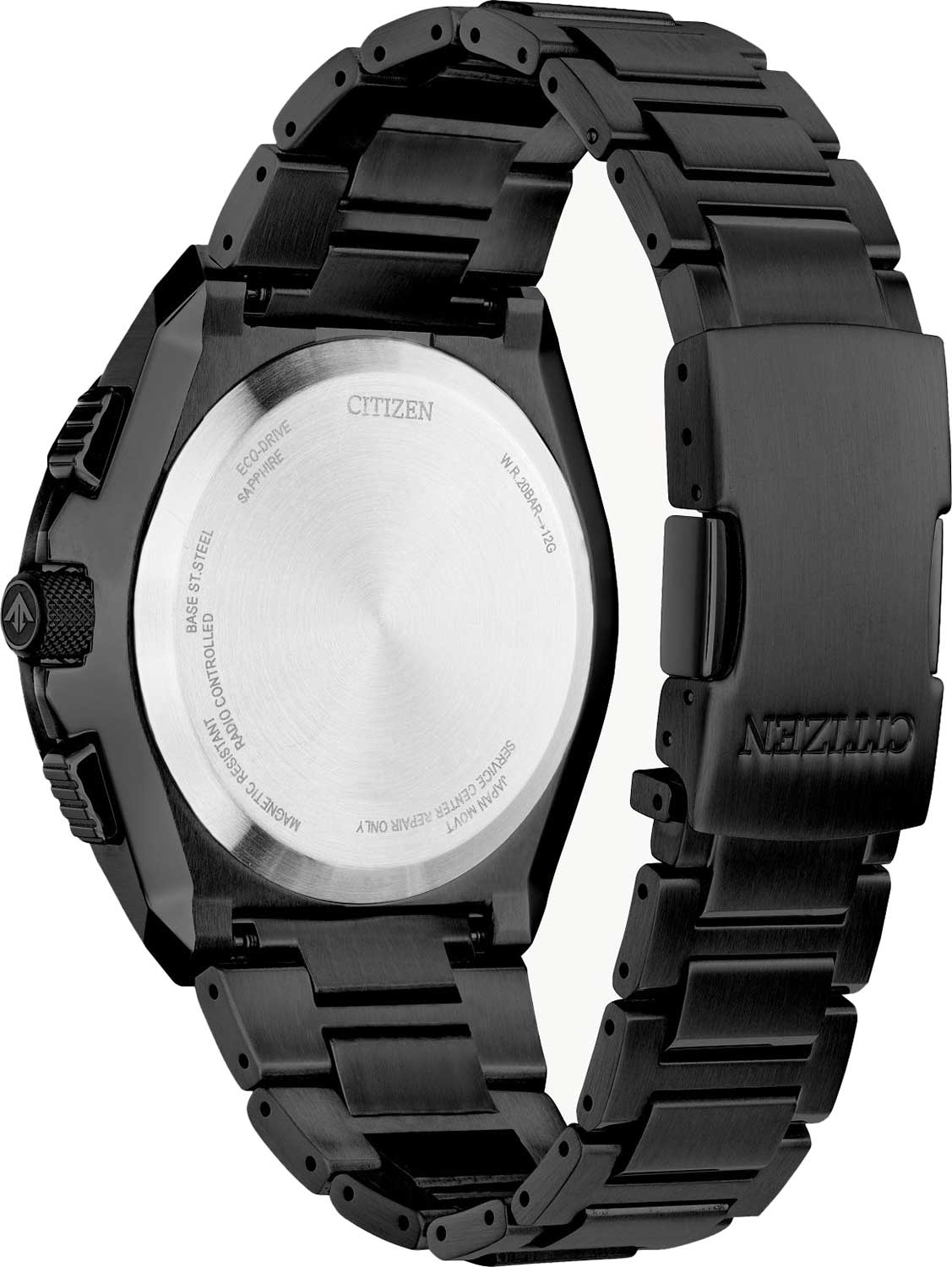 Citizen Promaster JY8127-59E часы-хронографХронографФункция позволяет измерять отрезки времени с особой точностью: часы, минуты, секунды. Верным признаком хронографа является наличие на циферблате 3 дополнительных окошек-счётчиков. с секундомеромСекундомерСекундоме́р — прибор, способный измерять интервалы времени с точностью до долей секунды. спортивного дизайна с высоким уровнем водозащиты. Корпус из нержавеющей стали с IP-покрытиемIP-покрытиеМетод ионного напыления. Демонстрирует повышенную устойчивость к истиранию, окислению и химическим веществам. Под воздействием высокого давления и температуры около 1500°C молекулы металла надёжно соединяются с частицами корпуса часов. диаметром 45,7 мм идеально сбалансирован. Сапфировое стеклоСапфировое стеклоПрочный и надёжный материал из кристалла сапфира синтетического происхождения, характеризующийся особой твёрдостью и устойчивостью к царапинам и повреждениям. с антибликовым покрытием обеспечивает отличную защиту циферблата от царапин. Часы работают на основе кварцевого механизма, питание от солнечной энергии. Стальной браслет на раскладной застёжкеРаскладная застёжкаТакой тип застёжки используется только на браслетах из металла. Она никогда не раскрывается полностью, происходит разделение на 2 и более частей. Раскладывающая застёжка снизит вероятность потери часов к минимуму. идеально дополняют дизайн часов, обеспечивая комфортное ношение. Стрелки и метки на циферблате имеют люминесцентное покрытиеЛюминесцентное покрытиеПозволяет считывать показания времени в темноте. Производители наносят на стрелки, часовые индексы, безель или поверхность циферблата светонакопительный состав, дающий холодное свечение. позволяющее легко определять время даже в темноте. Поворотный безельБезельВнешний ободок, закрепляющий стекло. В спортивных часах так называется поворотное кольцо с делениями на циферблате, выполняет роль таймера – замеряет отрезки времени на шкале. Неподвижный безель – элемент декора. Однонаправленно вращающийся безель на дайверских часах позволяет фиксировать моменты погружения и выныривания на поверхность.. Автоматический прием сигналов от радиовышек, расположенных в различных точках земного шара, которые передают временные сигналы от определенных атомных часов. Коррекция текущего времени радиосигналом на территории почти всей Европы, США, Японии и Китая. Функция индикации заряда (EOL) и предотвращения перезарядки. Мировое времяМировое время Полезное часовое усложнение, отображающее время в основных городах и известных областях по всему миру, оно связано с часовыми поясами, удобно для путешественников и бизнесменов. - 43 города, переход на зимнее и летнее время. Всемирное координированное время UTCUTCВсемирное кординационное время, не имеющее привязки к географическому положению Гринвича, основывается на атомном отсчёте времени. Регулировка времени осуществляется более точно, чем устаревшее GMT.