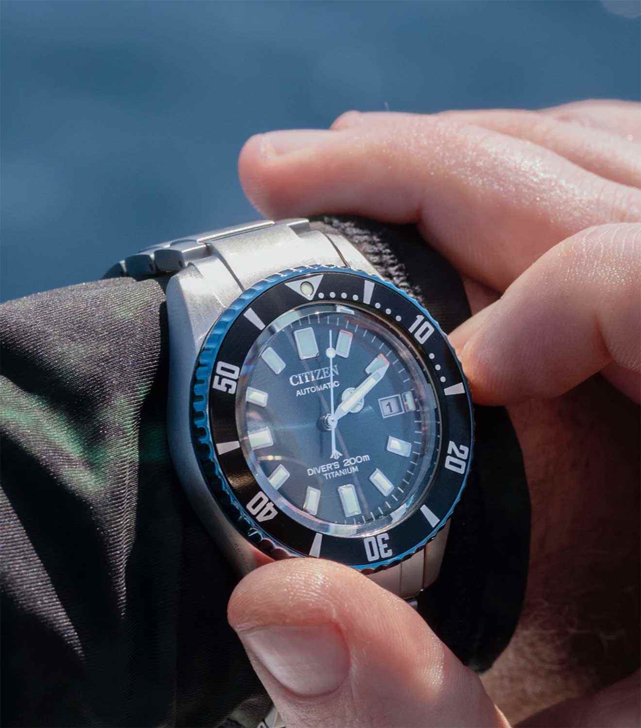 Citizen Promaster NB6026-56L - спортивный характер этих часов оценят современные мужчины, которые отдают предпочтение практичным и функциональным вещам. Лимитированная серия - 4500 экземпляров. Модель вдохновлена часами Citizen Challenge Diver 1977 года и посвящена 35-ти летию линейки Promaster. Сертифицированные часы для дайвинга (ISO 6425). Корпус из титана (Super Titanium™) диаметром 41 мм идеально сбалансирован. Сапфировое стеклоСапфировое стеклоПрочный и надёжный материал из кристалла сапфира синтетического происхождения, характеризующийся особой твёрдостью и устойчивостью к царапинам и повреждениям. с антибликовым покрытием обеспечивает отличную защиту циферблата от царапин. Титановый браслет на раскладной застёжкеРаскладная застёжкаТакой тип застёжки используется только на браслетах из металла. Она никогда не раскрывается полностью, происходит разделение на 2 и более частей. Раскладывающая застёжка снизит вероятность потери часов к минимуму. с удлинением для дайверов идеально дополняют дизайн часов, обеспечивая комфортное ношение. Стрелки и метки на циферблате имеют люминесцентное покрытиеЛюминесцентное покрытиеПозволяет считывать показания времени в темноте. Производители наносят на стрелки, часовые индексы, безель или поверхность циферблата светонакопительный состав, дающий холодное свечение. позволяющее легко определять время даже в темноте. Титановый безельБезельВнешний ободок, закрепляющий стекло. В спортивных часах так называется поворотное кольцо с делениями на циферблате, выполняет роль таймера – замеряет отрезки времени на шкале. Неподвижный безель – элемент декора. Однонаправленно вращающийся безель на дайверских часах позволяет фиксировать моменты погружения и выныривания на поверхность. с DLC-покрытиемDLC-покрытиеDiamond like carbon - одно из лучших видов покрытия, представляющее собой углерод с алмазными свойствами. На поверхность материала наносятся распавшиеся молекулы углерода, превращающиеся в плёнку из алмазоподобных связей, которая перенимает твёрдость алмаза. вращается в одном направлении. Запас хода 42 часа. Защищены от магнитных полей - 16000A/m. Окошко даты находится в положении 3 часа. Часы обладают впечатляющей водонепроницаемостью до 200WR, что делает их идеальными для плавания, ныряния и погружений с аквалангом. Завинчивающаяся задняя крышка и заводная головка.