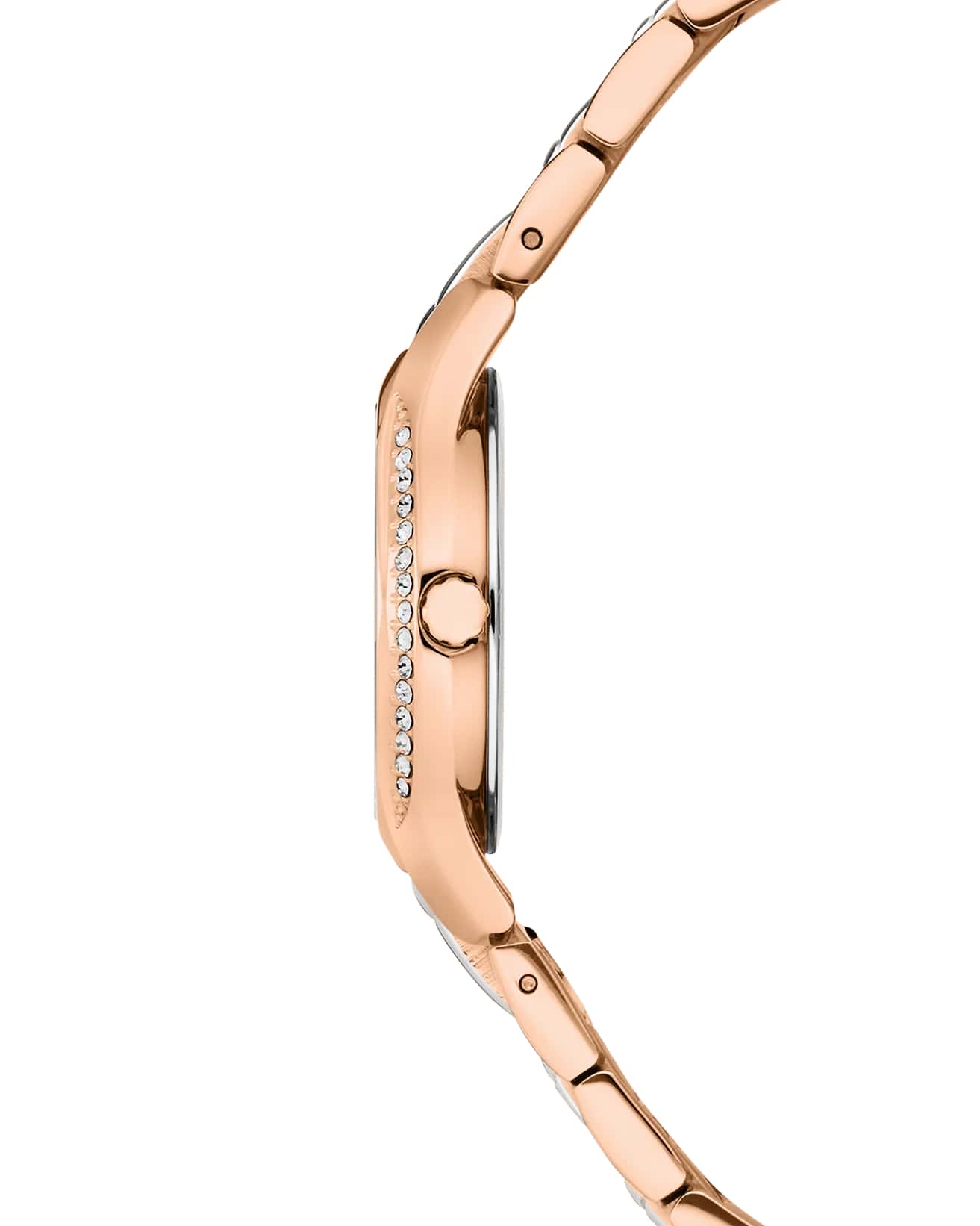 Женские наручные часы Sandara CO203.06 сочетают в себе элегантный дизайн и надежность современных технологий. Модель обладает круглым корпусом диаметром 28 мм, изготовленным из нержавеющей стали, что обеспечивает высокую устойчивость к внешним воздействиям. БезельБезельВнешний ободок, закрепляющий стекло. В спортивных часах так называется поворотное кольцо с делениями на циферблате, выполняет роль таймера – замеряет отрезки времени на шкале. Неподвижный безель – элемент декора. Однонаправленно вращающийся безель на дайверских часах позволяет фиксировать моменты погружения и выныривания на поверхность. с PVD-покрытиемPVDУльтратонкое покрытие наносится в технике вакуумного напыления, сочетает в себе нитрид титана особой прочности со слоем золота или оксида хрома. Несёт в себе декоративную или защитную функцию.. Браслет выполнен из нержавеющей стали с PVD-покрытиемPVDУльтратонкое покрытие наносится в технике вакуумного напыления, сочетает в себе нитрид титана особой прочности со слоем золота или оксида хрома. Несёт в себе декоративную или защитную функцию. и застежкой-бабочкойЗастёжка "бабочка"Такой вид застёжки дополняется предохранителями, помогающими избежать случайного раскрытия браслета. Обладают изящным исполнением. , которая отличается удобством использования и подходит для запястий любого размера благодаря своей посадке. Циферблат декорирован кристаллами, которые придают часам особый шик и неповторимый вид. Для защиты используется сапфировое стеклоСапфировое стеклоПрочный и надёжный материал из кристалла сапфира синтетического происхождения, характеризующийся особой твёрдостью и устойчивостью к царапинам и повреждениям., обеспечивающее прочную защиту от царапин. Часы работают на кварцевом механизме, что гарантирует точное время без необходимости подзаводки. Водонепроницаемость часов составляет 5 атмосфер, что позволяет использовать их в повседневной жизни, однако не рекомендуется для плавания или водных видов спорта.