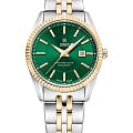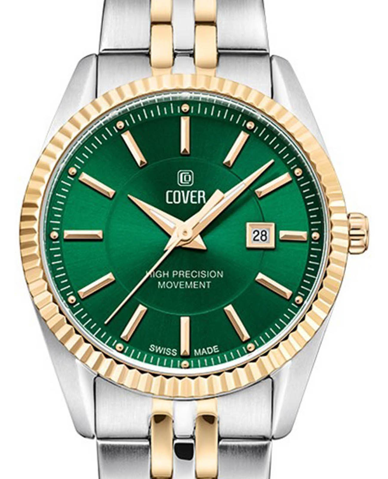 Часы COVER CO209.10 из коллекции Alston – элегантная модель швейцарского производства. Эти часы станут идеальным аксессуаром для элегантных дам, которые ценят стиль и качество. Браслет с раскладной застёжкойРаскладная застёжкаТакой тип застёжки используется только на браслетах из металла. Она никогда не раскрывается полностью, происходит разделение на 2 и более частей. Раскладывающая застёжка снизит вероятность потери часов к минимуму. и безельБезельВнешний ободок, закрепляющий стекло. В спортивных часах так называется поворотное кольцо с делениями на циферблате, выполняет роль таймера – замеряет отрезки времени на шкале. Неподвижный безель – элемент декора. Однонаправленно вращающийся безель на дайверских часах позволяет фиксировать моменты погружения и выныривания на поверхность. изготовлены из нержавеющей стали с PVDPVDУльтратонкое покрытие наносится в технике вакуумного напыления, сочетает в себе нитрид титана особой прочности со слоем золота или оксида хрома. Несёт в себе декоративную или защитную функцию. покрытием золотого цвета, корпус имеет диаметр 30 мм. На зеленом циферблате расположены накладные римские цифры. Надежное минеральное стеклоМинеральное стеклоМинеральное стекло представляет собой искусственно выращенный минерал кварца. Такое стекло отличается особой устойчивостью к повреждениям и царапинам. Уступает по некоторым качествам сапфировому стеклу. защищает часы от царапин и долго сохраняет первоначальный внешний вид. Они показывают день месяца, индикатор которых с накладной рамкой расположен в положении «3 часа». Водозащита 50 метров делает часы практичными для повседневного использования. На часовую, минутную стрелки нанесено люминесцентное покрытиеЛюминесцентное покрытиеПозволяет считывать показания времени в темноте. Производители наносят на стрелки, часовые индексы, безель или поверхность циферблата светонакопительный состав, дающий холодное свечение., которое светится в темноте, создавая необычное изображение. Эти часы идеально подойдут для светских раутов, бизнес-встреч и других важных событий, подчеркнут вашу элегантность и статус.