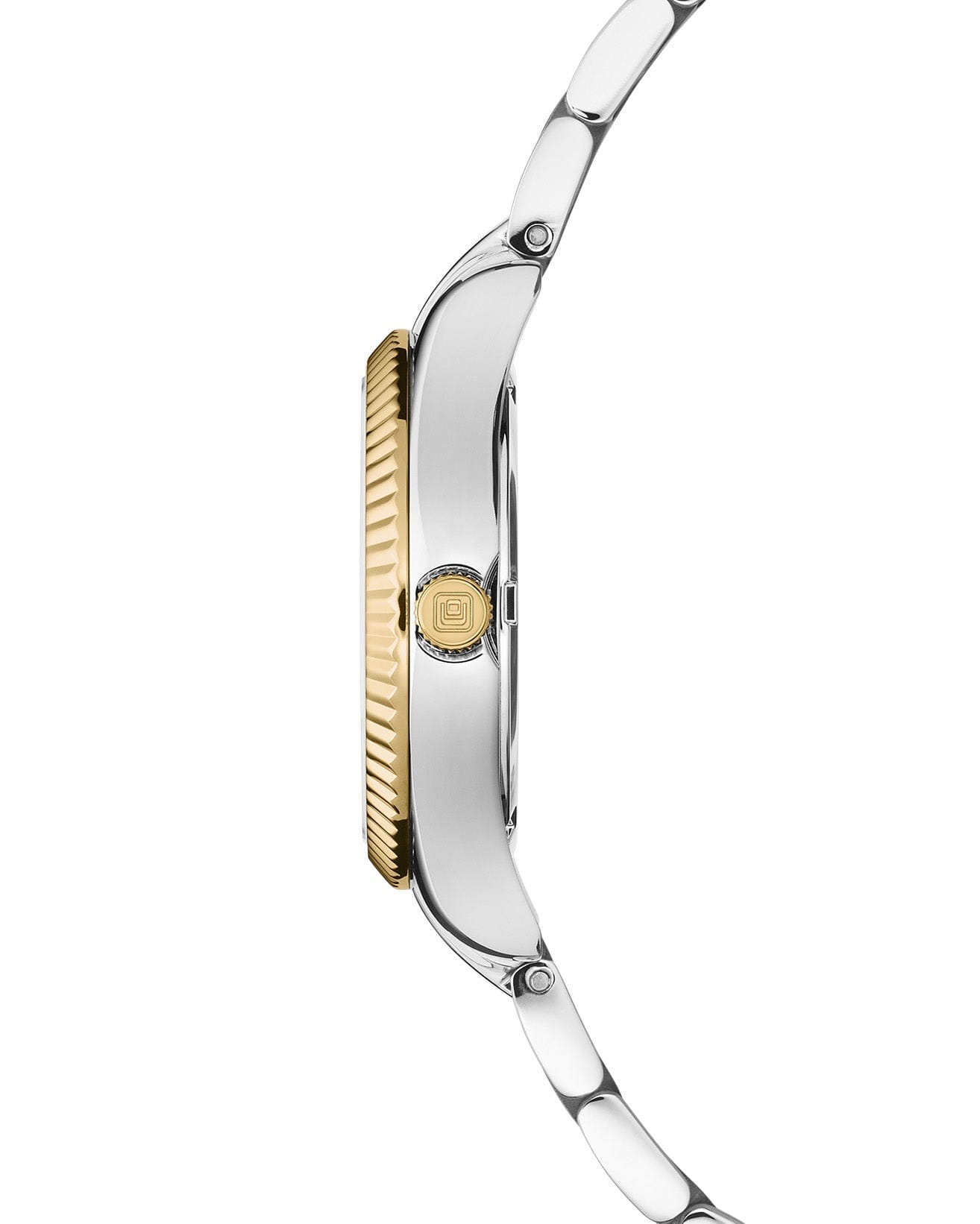 Часы Cover Valentina Mini CO224.02 воплощают в себе вечную элегантность благодаря своему чистому и утонченному дизайну. Корпус этих швейцарские часы изготовлен из полированной нержавеющей стали, а на браслет частично нанесено золотистое PVD-покрытиеPVDУльтратонкое покрытие наносится в технике вакуумного напыления, сочетает в себе нитрид титана особой прочности со слоем золота или оксида хрома. Несёт в себе декоративную или защитную функцию.. Они выделяются светящимся белым циферблатом из перламутра. Золотистый рифленый безельБезельВнешний ободок, закрепляющий стекло. В спортивных часах так называется поворотное кольцо с делениями на циферблате, выполняет роль таймера – замеряет отрезки времени на шкале. Неподвижный безель – элемент декора. Однонаправленно вращающийся безель на дайверских часах позволяет фиксировать моменты погружения и выныривания на поверхность. с PVD-покрытиемPVDУльтратонкое покрытие наносится в технике вакуумного напыления, сочетает в себе нитрид титана особой прочности со слоем золота или оксида хрома. Несёт в себе декоративную или защитную функцию. и ослепительные хрустальные часовые метки создают непринужденно элегантный вид а светящиеся стрелки благодаря люминесцентному покрытиюЛюминесцентное покрытиеПозволяет считывать показания времени в темноте. Производители наносят на стрелки, часовые индексы, безель или поверхность циферблата светонакопительный состав, дающий холодное свечение. обеспечивают отличную читаемость и практичность. Эти швейцарские женские часы, идеально подходящие как для делового стиля, так и для повседневного образа, воплощают в себе универсальность и утонченность. Оснащенные устойчивым к царапинам сапфировым стекломСапфировое стеклоПрочный и надёжный материал из кристалла сапфира синтетического происхождения, характеризующийся особой твёрдостью и устойчивостью к царапинам и повреждениям., швейцарским кварцевым механизмом, эти часы соединяют надежность и элегантность. Завершает образ стальной браслет с раскладной застёжкойРаскладная застёжкаТакой тип застёжки используется только на браслетах из металла. Она никогда не раскрывается полностью, происходит разделение на 2 и более частей. Раскладывающая застёжка снизит вероятность потери часов к минимуму., который удобно сидит на запястье и обеспечивает надежную фиксацию. Часы обладают водозащитой уровня 50WR, что делает их подходящими для повседневного использования и активного образа жизни.