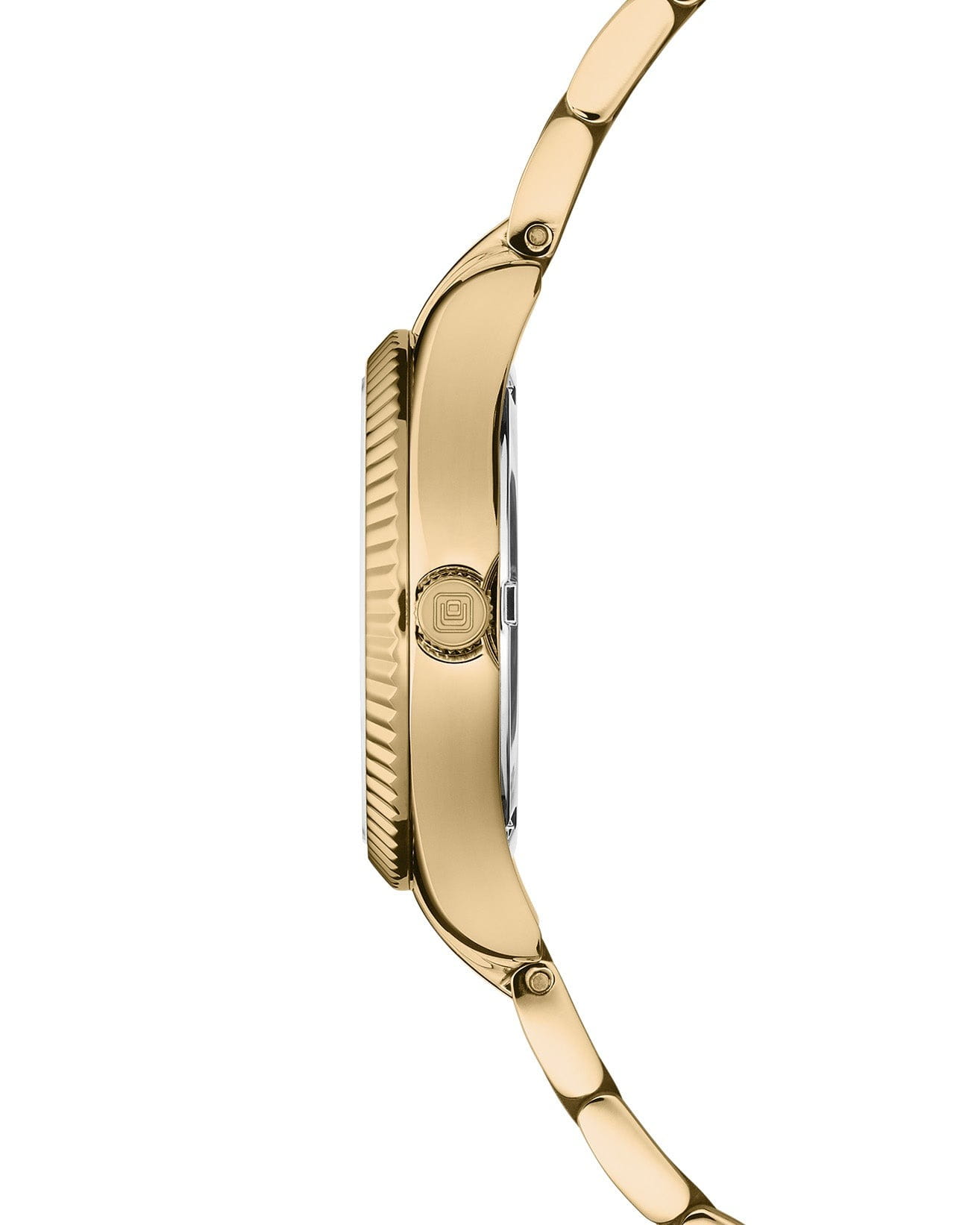 Часы Cover Valentina Mini CO224.05 воплощают в себе вечную элегантность благодаря своему чистому и утонченному дизайну. Корпус и браслет этих швейцарские часы изготовлен из полированной нержавеющей стали с золотистым PVD-покрытиемPVDУльтратонкое покрытие наносится в технике вакуумного напыления, сочетает в себе нитрид титана особой прочности со слоем золота или оксида хрома. Несёт в себе декоративную или защитную функцию.. Они выделяются светящимся белым циферблатом из перламутра. Золотистый рифленый безельБезельВнешний ободок, закрепляющий стекло. В спортивных часах так называется поворотное кольцо с делениями на циферблате, выполняет роль таймера – замеряет отрезки времени на шкале. Неподвижный безель – элемент декора. Однонаправленно вращающийся безель на дайверских часах позволяет фиксировать моменты погружения и выныривания на поверхность. с PVD-покрытиемPVDУльтратонкое покрытие наносится в технике вакуумного напыления, сочетает в себе нитрид титана особой прочности со слоем золота или оксида хрома. Несёт в себе декоративную или защитную функцию. и ослепительные хрустальные часовые метки создают непринужденно элегантный вид а светящиеся стрелки благодаря люминесцентному покрытиюЛюминесцентное покрытиеПозволяет считывать показания времени в темноте. Производители наносят на стрелки, часовые индексы, безель или поверхность циферблата светонакопительный состав, дающий холодное свечение. обеспечивают отличную читаемость и практичность. Эти швейцарские женские часы, идеально подходящие как для делового стиля, так и для повседневного образа, воплощают в себе универсальность и утонченность. Оснащенные устойчивым к царапинам сапфировым стекломСапфировое стеклоПрочный и надёжный материал из кристалла сапфира синтетического происхождения, характеризующийся особой твёрдостью и устойчивостью к царапинам и повреждениям., швейцарским кварцевым механизмом, эти часы соединяют надежность и элегантность. Завершает образ стальной браслет с раскладной застёжкойРаскладная застёжкаТакой тип застёжки используется только на браслетах из металла. Она никогда не раскрывается полностью, происходит разделение на 2 и более частей. Раскладывающая застёжка снизит вероятность потери часов к минимуму., который удобно сидит на запястье и обеспечивает надежную фиксацию. Часы обладают водозащитой уровня 50WR, что делает их подходящими для повседневного использования и активного образа жизни.