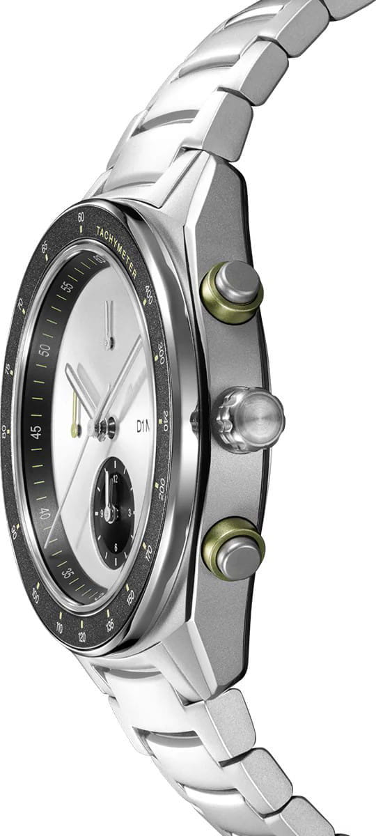 Элегантный хронограф D1 Milano Cronografo Essential White CHBJ20 - идеальное воплощение мужественности и стиля. Этот многофункциональный аксессуар оснащен секундомером, тахиметромТахиметрРазмеченная шкала, располагается на ободке или безеле часов. Тахиметр позволяет рассчитать скорость на определённом участке пути, расстояние измеряется в километрах или милях.. что делает его незаменимым компаньоном в повседневной жизни. Изысканный корпус и браслет выполнены из стали. Неподвижный безельБезельВнешний ободок, закрепляющий стекло. В спортивных часах так называется поворотное кольцо с делениями на циферблате, выполняет роль таймера – замеряет отрезки времени на шкале. Неподвижный безель – элемент декора. Однонаправленно вращающийся безель на дайверских часах позволяет фиксировать моменты погружения и выныривания на поверхность. из нержавеющей стали с PVD-покрытиемPVDУльтратонкое покрытие наносится в технике вакуумного напыления, сочетает в себе нитрид титана особой прочности со слоем золота или оксида хрома. Несёт в себе декоративную или защитную функцию.. Минималистичный дизайн циферблата, защищенный прочным сапфировым стекломСапфировое стеклоПрочный и надёжный материал из кристалла сапфира синтетического происхождения, характеризующийся особой твёрдостью и устойчивостью к царапинам и повреждениям. с антибликовым покрытиемАнтибликовое покрытиеСлой оксида металла в 0,13-0,3 микрон, благодаря которому стекло часов не бликует и не отражает свет. Антибликовое покрытие уменьшает отражение света в 10 раз, обеспечивая отличную читаемость показателей циферблата., привлекает внимание своей сдержанной красотой. Стрелки с люминесцентным покрытиемЛюминесцентное покрытиеПозволяет считывать показания времени в темноте. Производители наносят на стрелки, часовые индексы, безель или поверхность циферблата светонакопительный состав, дающий холодное свечение., обеспечивающим хорошую читаемость в темноте. Надежная конструкция с задней крышкой на 8 винтах и стильный браслет с удобной застёжкой «бабочка» с кнопкамиЗастёжка "бабочка"Такой вид застёжки дополняется предохранителями, помогающими избежать случайного раскрытия браслета. Обладают изящным исполнением. обеспечивают комфорт при ношении. Водозащита 50 метров защищает часы от брызг и дождя, делая их подходящими для повседневного использования. Это не просто часы, а статусный аксессуар, подчеркивающий безупречный вкус и внимание к деталям своего владельца.