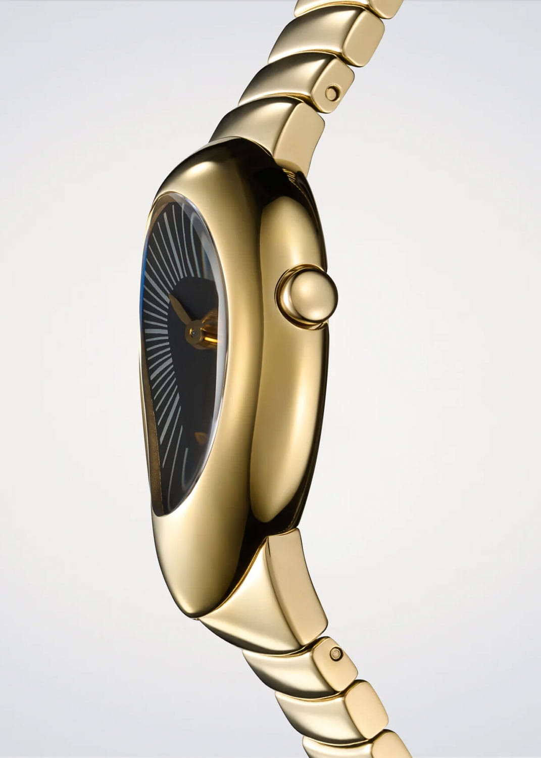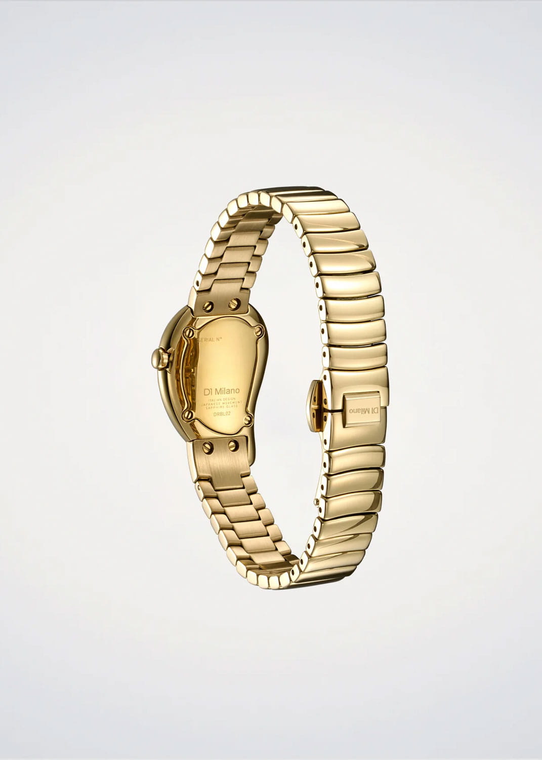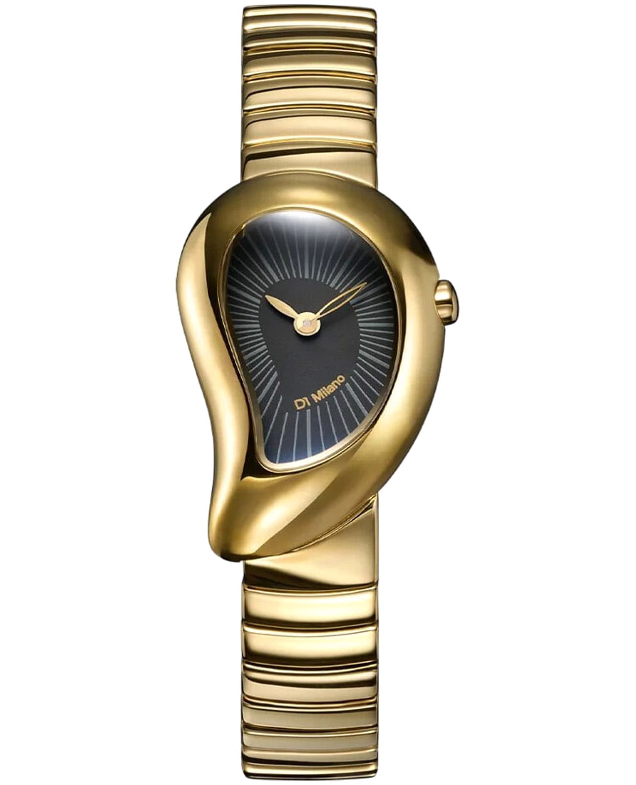 Женские кварцевые часы D1 Milano Drop DRBL02 — это стильное сочетание элегантности и современного дизайна. Стальной корпус в форме капли выполнен из нержавеющей стали с PVD-покрытиемPVDУльтратонкое покрытие наносится в технике вакуумного напыления, сочетает в себе нитрид титана особой прочности со слоем золота или оксида хрома. Несёт в себе декоративную или защитную функцию., диаметром 23 мм, что придаст образу элегантности и надежности. Изысканный циферблат с метками в виде штрихов придает модели особый блеск. Циферблат защищен сапфировым стекломСапфировое стеклоПрочный и надёжный материал из кристалла сапфира синтетического происхождения, характеризующийся особой твёрдостью и устойчивостью к царапинам и повреждениям. с антибликовым покрытиемАнтибликовое покрытиеСлой оксида металла в 0,13-0,3 микрон, благодаря которому стекло часов не бликует и не отражает свет. Антибликовое покрытие уменьшает отражение света в 10 раз, обеспечивая отличную читаемость показателей циферблата., обеспечивающий устойчивость к царапинам. Часы оснащены надежным кварцевым механизмом. Стальной браслет с PVD-покрытиемPVDУльтратонкое покрытие наносится в технике вакуумного напыления, сочетает в себе нитрид титана особой прочности со слоем золота или оксида хрома. Несёт в себе декоративную или защитную функцию. на застёжке-бабочке с кнопкамиЗастёжка "бабочка"Такой вид застёжки дополняется предохранителями, помогающими избежать случайного раскрытия браслета. Обладают изящным исполнением. , гарантирует комфортное и безопасное ношение. Класс водозащиты: 50 метров позволит защитить корпус от случайных брызг или капель дождя. Отличный выбор для тех, кто ценит утонченность и качество.