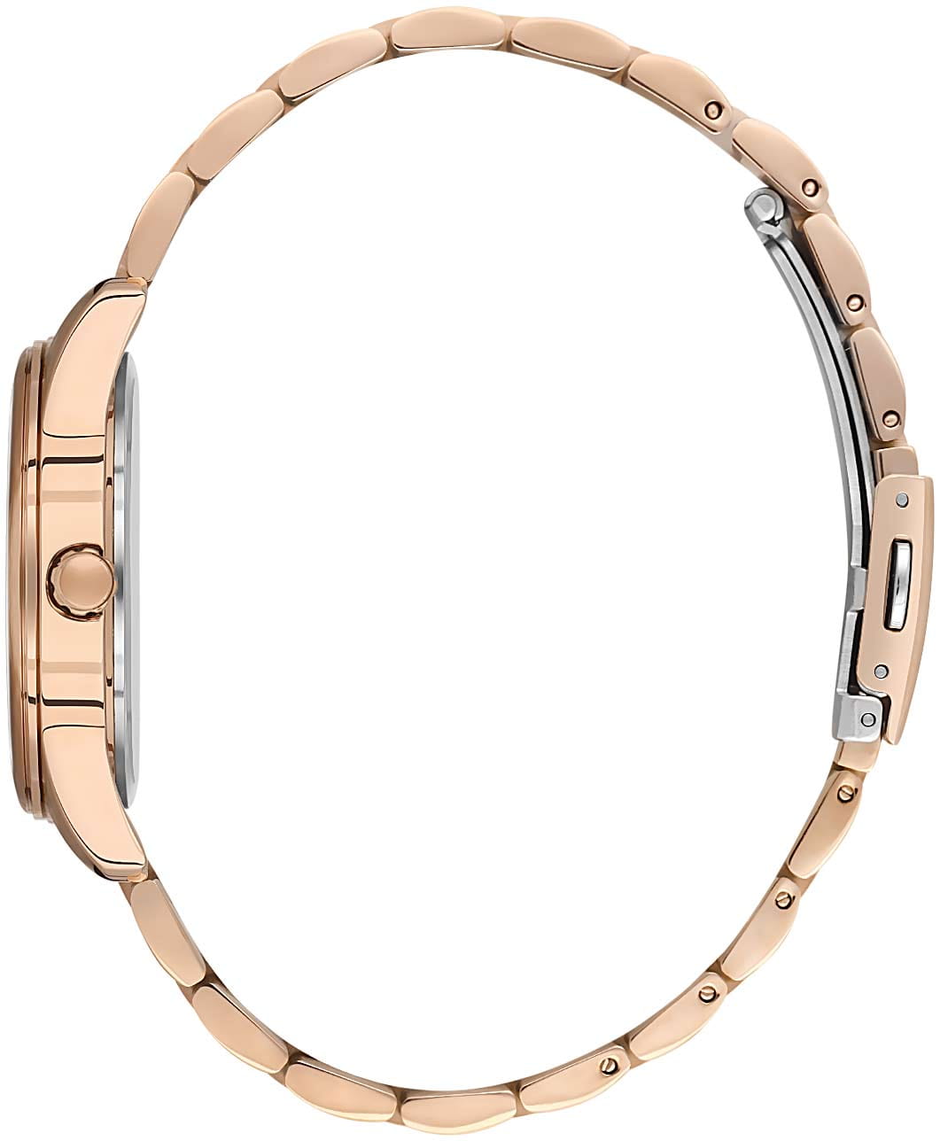 Женские кварцевые часы Daniel Klein — это обворожительный аксессуар, сочетающий стиль и безупречность. Корпус диаметром 34 мм выполнен из металла с IP-покрытиемIP-покрытиеМетод ионного напыления. Демонстрирует повышенную устойчивость к истиранию, окислению и химическим веществам. Под воздействием высокого давления и температуры около 1500°C молекулы металла надёжно соединяются с частицами корпуса часов. цвета розового золота. Циферблат серебристого цвета выполнен по технологии Sunray («солнечные лучи») и оформлен точками с кристаллами и стрелками. Окошко дня недели расположено в положении 12 часов, окошко даты — в положении 3 часов. Стрелки с люминесцентным покрытиемЛюминесцентное покрытиеПозволяет считывать показания времени в темноте. Производители наносят на стрелки, часовые индексы, безель или поверхность циферблата светонакопительный состав, дающий холодное свечение., обеспечивающим хорошую читаемость в темноте. Циферблат защищён минеральным стекломМинеральное стеклоМинеральное стекло представляет собой искусственно выращенный минерал кварца. Такое стекло отличается особой устойчивостью к повреждениям и царапинам. Уступает по некоторым качествам сапфировому стеклу.. Часы оснащены стальным браслетом с IP-покрытиемIP-покрытиеМетод ионного напыления. Демонстрирует повышенную устойчивость к истиранию, окислению и химическим веществам. Под воздействием высокого давления и температуры около 1500°C молекулы металла надёжно соединяются с частицами корпуса часов. на раскладной застёжкеРаскладная застёжкаТакой тип застёжки используется только на браслетах из металла. Она никогда не раскрывается полностью, происходит разделение на 2 и более частей. Раскладывающая застёжка снизит вероятность потери часов к минимуму.. Водонепроницаемость 30 м позволяет использовать часы в повседневных условиях. Идеальный выбор для тех, кто ценит турецкое качество и элегантный дизайн.