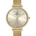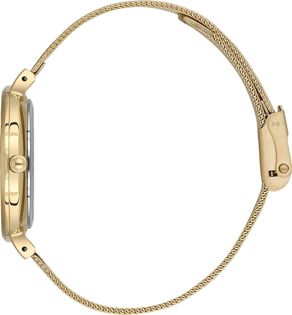Женские кварцевые часы Daniel Klein — это элегантный аксессуар для обладательниц тонкого вкуса. Корпус диаметром 32 мм выполнен из нержавеющей стали с IP-покрытиемIP-покрытиеМетод ионного напыления. Демонстрирует повышенную устойчивость к истиранию, окислению и химическим веществам. Под воздействием высокого давления и температуры около 1500°C молекулы металла надёжно соединяются с частицами корпуса часов.. Циферблат цвета шампань оформлен штрихами и стрелками. Циферблат защищён минеральным стекломМинеральное стеклоМинеральное стекло представляет собой искусственно выращенный минерал кварца. Такое стекло отличается особой устойчивостью к повреждениям и царапинам. Уступает по некоторым качествам сапфировому стеклу.. Часы оснащены стальным браслетом миланского плетения с IP-покрытиемIP-покрытиеМетод ионного напыления. Демонстрирует повышенную устойчивость к истиранию, окислению и химическим веществам. Под воздействием высокого давления и температуры около 1500°C молекулы металла надёжно соединяются с частицами корпуса часов. на раскладном замкеРаскладная застёжкаТакой тип застёжки используется только на браслетах из металла. Она никогда не раскрывается полностью, происходит разделение на 2 и более частей. Раскладывающая застёжка снизит вероятность потери часов к минимуму.. Водонепроницаемость 30 м позволяет использовать часы в повседневных условиях. Идеальный выбор для тех, кто ценит турецкое качество и лаконичный дизайн.