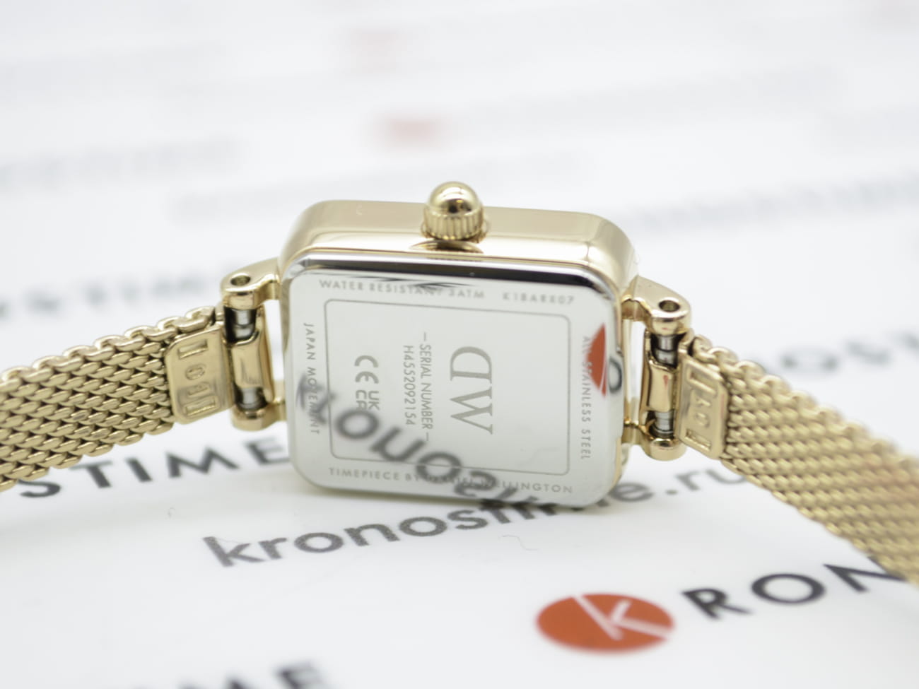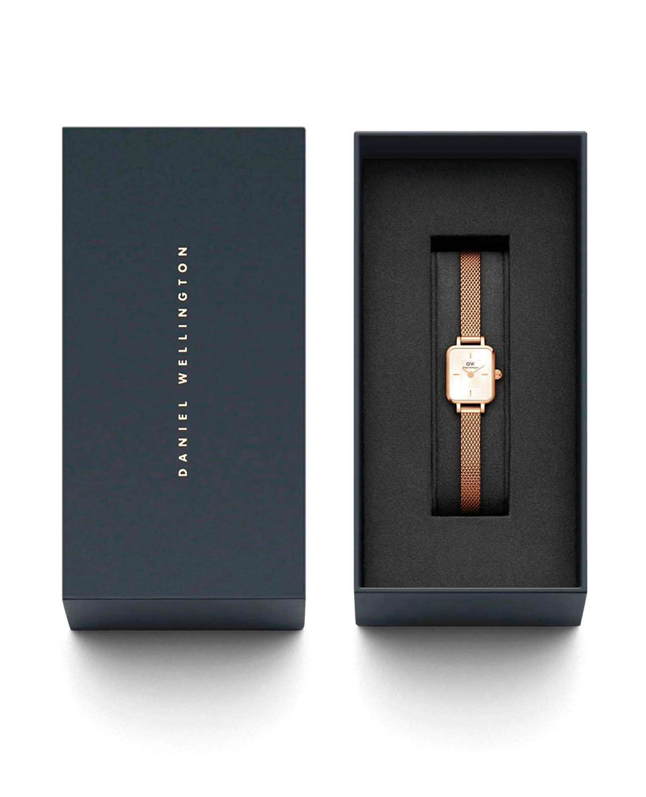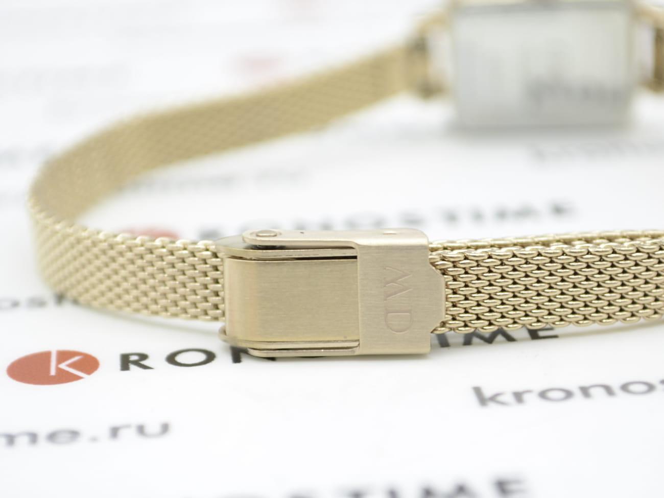 Женские наручные часы с минеральным стекломМинеральное стеклоМинеральное стекло представляет собой искусственно выращенный минерал кварца. Такое стекло отличается особой устойчивостью к повреждениям и царапинам. Уступает по некоторым качествам сапфировому стеклу. Daniel Wellington Quadro DW00100651, кварцевый механизм с высокой точностью. Корпус часов изготовлен из стали с PVD-покрытиемPVDУльтратонкое покрытие наносится в технике вакуумного напыления, сочетает в себе нитрид титана особой прочности со слоем золота или оксида хрома. Несёт в себе декоративную или защитную функцию.. Двухуровневый циферблат выполнен по технологии Sunray (солнечные лучи) и украшен фирменным логотипом Daniel Wellington. Накладные метки в виде штрихов. Рифленая заводная головка. Индивидуальный серийный номер. Класс водозащиты: 30 метров, позволит защитить корпус от случайных брызг или капель дождя. Стальной браслет миланского плетения с PVD-покрытиемPVDУльтратонкое покрытие наносится в технике вакуумного напыления, сочетает в себе нитрид титана особой прочности со слоем золота или оксида хрома. Несёт в себе декоративную или защитную функцию. на раскладном замкеРаскладной замокДанный вариант застежки используется только на часах с металлическим браслетом. Отличительная особенность такого крепления в том, что длина браслета становится универсальной и вы можете самостоятельно отрегулировать нужный вам размер – застежка просто двигается по браслету часов..