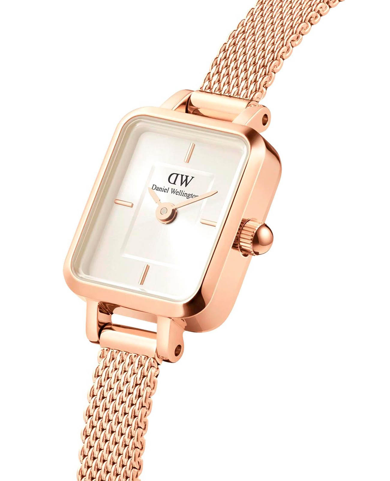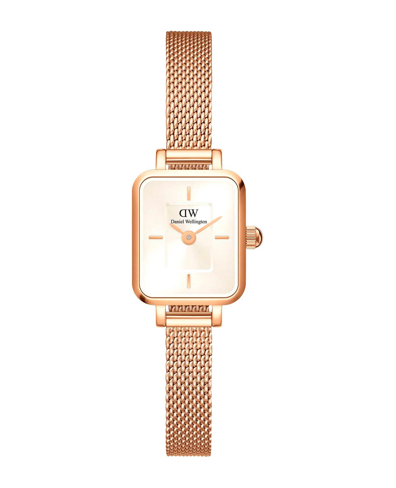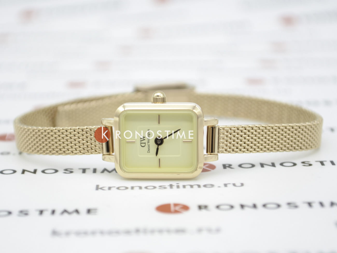 Женские наручные часы с минеральным стекломМинеральное стеклоМинеральное стекло представляет собой искусственно выращенный минерал кварца. Такое стекло отличается особой устойчивостью к повреждениям и царапинам. Уступает по некоторым качествам сапфировому стеклу. Daniel Wellington Quadro DW00100651, кварцевый механизм с высокой точностью. Корпус часов изготовлен из стали с PVD-покрытиемPVDУльтратонкое покрытие наносится в технике вакуумного напыления, сочетает в себе нитрид титана особой прочности со слоем золота или оксида хрома. Несёт в себе декоративную или защитную функцию.. Двухуровневый циферблат выполнен по технологии Sunray (солнечные лучи) и украшен фирменным логотипом Daniel Wellington. Накладные метки в виде штрихов. Рифленая заводная головка. Индивидуальный серийный номер. Класс водозащиты: 30 метров, позволит защитить корпус от случайных брызг или капель дождя. Стальной браслет миланского плетения с PVD-покрытиемPVDУльтратонкое покрытие наносится в технике вакуумного напыления, сочетает в себе нитрид титана особой прочности со слоем золота или оксида хрома. Несёт в себе декоративную или защитную функцию. на раскладном замкеРаскладной замокДанный вариант застежки используется только на часах с металлическим браслетом. Отличительная особенность такого крепления в том, что длина браслета становится универсальной и вы можете самостоятельно отрегулировать нужный вам размер – застежка просто двигается по браслету часов..