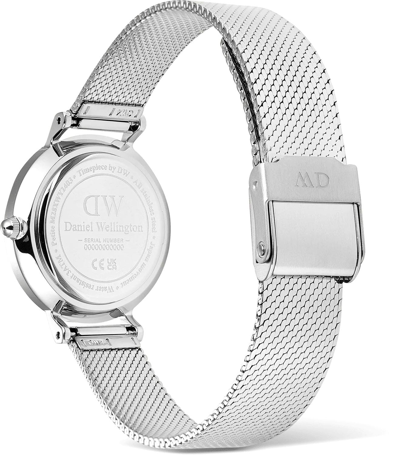Женские наручные часы с минеральным стекломМинеральное стеклоМинеральное стекло представляет собой искусственно выращенный минерал кварца. Такое стекло отличается особой устойчивостью к повреждениям и царапинам. Уступает по некоторым качествам сапфировому стеклу. Daniel Wellington Petite Reflection Silver DW00100796, кварцевый механизм с высокой точностью. Корпус часов изготовлен из нержавеющей стали. Накладные метки в виде штрихов. Японский кварцевый механизм. Рифленая заводная головка. Класс водозащиты: 30 метров, позволит защитить корпус от случайных брызг или капель дождя. Стальной браслет миланского плетения на раскладном замкеРаскладной замокДанный вариант застежки используется только на часах с металлическим браслетом. Отличительная особенность такого крепления в том, что длина браслета становится универсальной и вы можете самостоятельно отрегулировать нужный вам размер – застежка просто двигается по браслету часов..