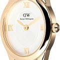 Daniel Wellington Ophelia — женственные часы с овальным корпусом 22 мм из нержавеющей стали с изящным PVDPVDУльтратонкое покрытие наносится в технике вакуумного напыления, сочетает в себе нитрид титана особой прочности со слоем золота или оксида хрома. Несёт в себе декоративную или защитную функцию.-покрытием в цвете золота. Глубокий циферблат с радиальным переливом украшен римскими индексами, что придаёт образу классическую элегантность.