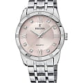 Яркий стиль и функциональность этих часов придутся по душе активной девушке. Кварцевый механизм с высокой точностью. Минеральное стеклоМинеральное стеклоМинеральное стекло представляет собой искусственно выращенный минерал кварца. Такое стекло отличается особой устойчивостью к повреждениям и царапинам. Уступает по некоторым качествам сапфировому стеклу. устойчивое к появлению царапин, обладающее высокой прозрачностью. Класс водозащиты: 50 метров, позволит защитить корпус от случайных брызг или капель дождя. Циферблат украшен цирконами. Корпус часов изготовлен из нержавеющей стали 316L. Браслет с раскладной застёжкойРаскладная застёжкаТакой тип застёжки используется только на браслетах из металла. Она никогда не раскрывается полностью, происходит разделение на 2 и более частей. Раскладывающая застёжка снизит вероятность потери часов к минимуму..