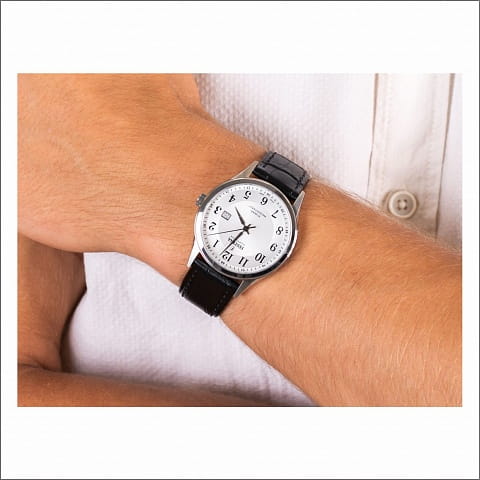 Практичные и стильные часы с круглым корпусом на кожаном ремешке идеальны для современного ритма жизни. Кварцевый механизм с высокой точностью. Сапфировое стеклоСапфировое стеклоПрочный и надёжный материал из кристалла сапфира синтетического происхождения, характеризующийся особой твёрдостью и устойчивостью к царапинам и повреждениям. устойчивое к появлению царапин, обладающее высокой прозрачностью. Класс водозащиты: 100 метров, позволит плавать, нырять и заниматься другими водными видами спорта. Корпус часов изготовлен из нержавеющей стали. Кожаный ремешок с классической застежкой.