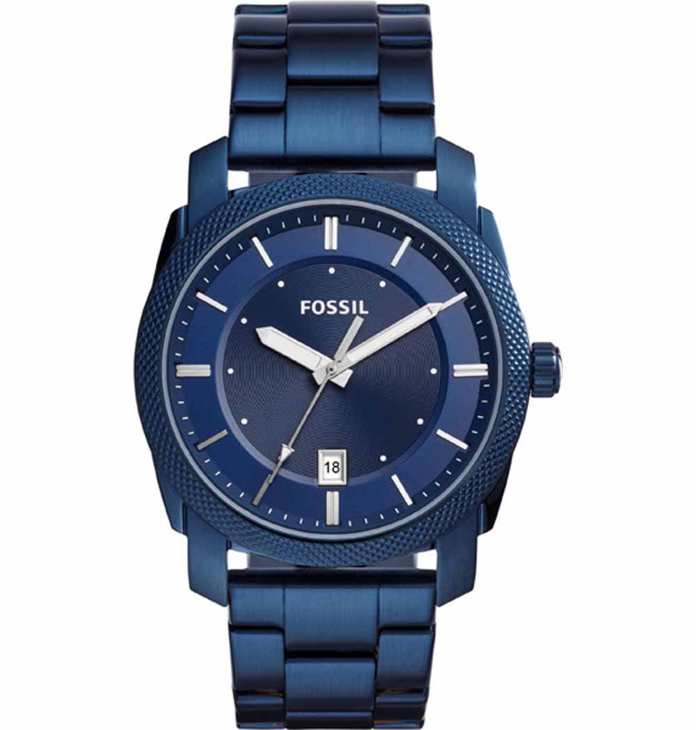 Стильные часы в синем цвете для сильного и мужественного. Machine Three-Hand Date Blue-Tone Stainless Steel Watch. Браслет с раскладывающейся застежкой.