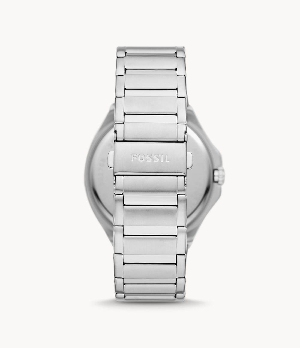 Механический механизм (автоматический калибр) с высокой точностью. Минеральное стеклоМинеральное стеклоМинеральное стекло представляет собой искусственно выращенный минерал кварца. Такое стекло отличается особой устойчивостью к повреждениям и царапинам. Уступает по некоторым качествам сапфировому стеклу. устойчивое к появлению царапин, обладающее высокой прозрачностью. Стрелки и метки с люминесцентным покрытиемЛюминесцентное покрытиеПозволяет считывать показания времени в темноте. Производители наносят на стрелки, часовые индексы, безель или поверхность циферблата светонакопительный состав, дающий холодное свечение.. Класс водозащиты: 50 метров, позволит защитить корпус от случайных брызг или капель дождя. Корпус часов и браслет изготовлены из нержавеющей стали. Браслет с раскладной застёжкойРаскладная застёжкаТакой тип застёжки используется только на браслетах из металла. Она никогда не раскрывается полностью, происходит разделение на 2 и более частей. Раскладывающая застёжка снизит вероятность потери часов к минимуму..