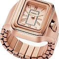 Уникальные часы-кольцо с минеральным стекломМинеральное стеклоМинеральное стекло представляет собой искусственно выращенный минерал кварца. Такое стекло отличается особой устойчивостью к повреждениям и царапинам. Уступает по некоторым качествам сапфировому стеклу. Fossil Raquel Ring ES5345, кварцевый механизм с высокой точностью. Корпус и браслет часов изготовлены из нержавеющей стали с IP-покрытиемIP-покрытиеМетод ионного напыления. Демонстрирует повышенную устойчивость к истиранию, окислению и химическим веществам. Под воздействием высокого давления и температуры около 1500°C молекулы металла надёжно соединяются с частицами корпуса часов.. Класс водозащиты: 50 метров, позволит защитить корпус от случайных брызг или капель дождя. Циферблат выполнен с метками в виде штрихов. С помощью расширительного ремешка Вы сможете надеть модель на любой палец.