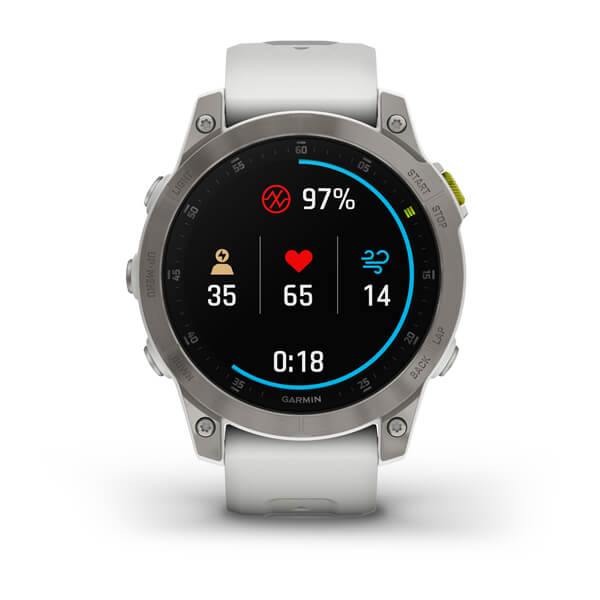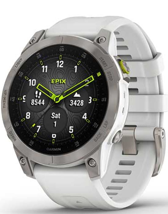 Умные многофункциональные мужские часы Garmin Epix (Gen 2) 010-02582-21, электронный механизм с высокой точностью. Класс водозащиты: 100 метров, позволит плавать, нырять и заниматься другими водными видами спорта. Стальной корпус. Циферблат с сапфировым стекломСапфировое стеклоПрочный и надёжный материал из кристалла сапфира синтетического происхождения, характеризующийся особой твёрдостью и устойчивостью к царапинам и повреждениям.. Экран с светодиодной подсветкойСветодиодная подсветкаСветодиодная или LED-подсветка обеспечивает появление яркого холодного свечения за счёт LED-элементов - маленьких лампочек. Они потребляют минимальное количество энергии, чаще всего можно встретить 1 светодиод, в нижней части циферблата.. Силиконовый ремешок на стандартной застёжке. Безель из титана.