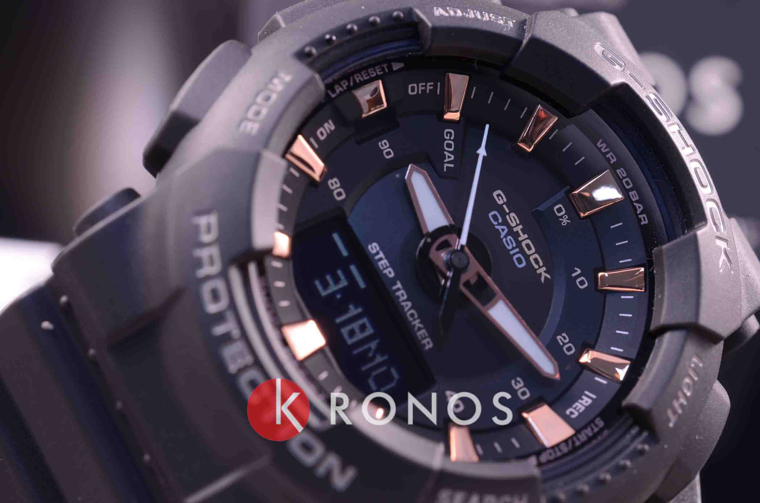 Аксессуар в тёмном исполнении с цветовыми акцентами оттенка розового золота стильно смотрится на запястье и подойдёт к любой одежде. Модель оснащена дополнительными усложнениями, помогающими повысить эффективность тренировок: трекер активности измеряет количество шагов от 0 до 999999, секундомер с памятью на 200 результатов, мультифункциональный таймер. При отсутствии активности часы будут уведомлять об этом звуковым сигналом. Японский кварцевый механизм работает от батарейки, срок её службы составляет 2 года. Минеральное стекло противостоит появлению царапин. Светодиодная подсветкаСветодиодная подсветкаСветодиодная или LED-подсветка обеспечивает появление яркого холодного свечения за счёт LED-элементов - маленьких лампочек. Они потребляют минимальное количество энергии, чаще всего можно встретить 1 светодиод, в нижней части циферблата.. Водонепроницаемость 200 метров. Противоударный корпусУдаропрочный корпусМеханизм заключён в корпус, выполненный из современных материалов, устойчивых к ударам, механическим повреждениям и падению с высоты: инновационный пластик, карбон, нержавеющая сталь, титан. и гибкий ремешок из полимерного материала. ХронографХронографФункция позволяет измерять отрезки времени с особой точностью: часы, минуты, секунды. Верным признаком хронографа является наличие на циферблате 3 дополнительных окошек-счётчиков., будильник, мировое времяМировое время Полезное часовое усложнение, отображающее время в основных городах и известных областях по всему миру, оно связано с часовыми поясами, удобно для путешественников и бизнесменов. , автоматический календарь до 2099 года. Габариты: 49 x 45,9 x 16 мм.