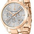 Мужские наручные часы Greenwich 043.40.33 c хронографомХронографФункция позволяет измерять отрезки времени с особой точностью: часы, минуты, секунды. Верным признаком хронографа является наличие на циферблате 3 дополнительных окошек-счётчиков. представляют собой классический вариант для повседневной носки. Циферблат украшается брендовым логотипом, изображающим Розу Ветров. Эмблема мореплавательского духа символизирует удачу, стремление достигнуть поставленной цели. Часы характеризуются традиционными формами, лаконичным исполнением, что делает модель элегантным дополнением к деловому костюму. Надёжный корпус из нержавеющей стали с PVD-покрытиемPVDУльтратонкое покрытие наносится в технике вакуумного напыления, сочетает в себе нитрид титана особой прочности со слоем золота или оксида хрома. Несёт в себе декоративную или защитную функцию.. спасает японский механизм от повреждений и ударов. Минеральное стеклоМинеральное стеклоМинеральное стекло представляет собой искусственно выращенный минерал кварца. Такое стекло отличается особой устойчивостью к повреждениям и царапинам. Уступает по некоторым качествам сапфировому стеклу. отличается устойчивостью к образованию царапин на поверхности. Стрелки и метки с люминесцентным покрытиемЛюминесцентное покрытиеПозволяет считывать показания времени в темноте. Производители наносят на стрелки, часовые индексы, безель или поверхность циферблата светонакопительный состав, дающий холодное свечение.. Окошко даты находится в положении между 4 и 5 часов. Стальной браслет с PVD-покрытиемPVDУльтратонкое покрытие наносится в технике вакуумного напыления, сочетает в себе нитрид титана особой прочности со слоем золота или оксида хрома. Несёт в себе декоративную или защитную функцию.. на раскладной застёжкеРаскладная застёжкаТакой тип застёжки используется только на браслетах из металла. Она никогда не раскрывается полностью, происходит разделение на 2 и более частей. Раскладывающая застёжка снизит вероятность потери часов к минимуму..