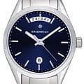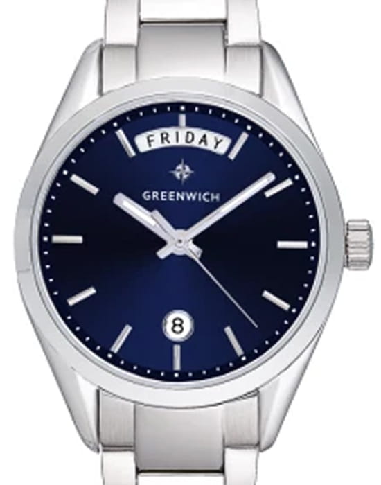 Мужские кварцевые часы с минеральным стекломМинеральное стеклоМинеральное стекло представляет собой искусственно выращенный минерал кварца. Такое стекло отличается особой устойчивостью к повреждениям и царапинам. Уступает по некоторым качествам сапфировому стеклу. Greenwich GW 351.10.36. Корпус часов изготовлен из стали . Стрелки с люминесцентным покрытиемЛюминесцентное покрытиеПозволяет считывать показания времени в темноте. Производители наносят на стрелки, часовые индексы, безель или поверхность циферблата светонакопительный состав, дающий холодное свечение.. Класс водозащиты: 50 метров, позволит защитить корпус от случайных брызг или капель дождя. Стальной браслет на раскладной застёжкеРаскладная застёжкаТакой тип застёжки используется только на браслетах из металла. Она никогда не раскрывается полностью, происходит разделение на 2 и более частей. Раскладывающая застёжка снизит вероятность потери часов к минимуму..Окошко даты находится в положении 6 часа.