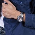Кварцевый механизм с высокой точностью. Минеральное стеклоМинеральное стеклоМинеральное стекло представляет собой искусственно выращенный минерал кварца. Такое стекло отличается особой устойчивостью к повреждениям и царапинам. Уступает по некоторым качествам сапфировому стеклу. устойчивое к появлению царапин, обладающее высокой прозрачностью. Стрелки с люминесцентным покрытиемЛюминесцентное покрытиеПозволяет считывать показания времени в темноте. Производители наносят на стрелки, часовые индексы, безель или поверхность циферблата светонакопительный состав, дающий холодное свечение.. Класс водозащиты: 50 метров, позволит защитить корпус от случайных брызг или капель дождя. Корпус часов изготовлен из нержавеющей стали. Браслет с раскладной застёжкойРаскладная застёжкаТакой тип застёжки используется только на браслетах из металла. Она никогда не раскрывается полностью, происходит разделение на 2 и более частей. Раскладывающая застёжка снизит вероятность потери часов к минимуму..