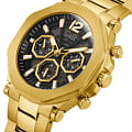 Мужские наручные часы Guess GW0539G2 с минеральным стекломМинеральное стеклоМинеральное стекло представляет собой искусственно выращенный минерал кварца. Такое стекло отличается особой устойчивостью к повреждениям и царапинам. Уступает по некоторым качествам сапфировому стеклу., кварцевый механизм с высокой точностью. Класс водозащиты: 50 метров, позволит защитить корпус от случайных брызг или капель дождя. Стрелки и метки с люминесцентным покрытиемЛюминесцентное покрытиеПозволяет считывать показания времени в темноте. Производители наносят на стрелки, часовые индексы, безель или поверхность циферблата светонакопительный состав, дающий холодное свечение.. Корпус часов изготовлен из стали с IP-покрытиемIP-покрытиеМетод ионного напыления. Демонстрирует повышенную устойчивость к истиранию, окислению и химическим веществам. Под воздействием высокого давления и температуры около 1500°C молекулы металла надёжно соединяются с частицами корпуса часов.. Браслет с раскладной застёжкойРаскладная застёжкаТакой тип застёжки используется только на браслетах из металла. Она никогда не раскрывается полностью, происходит разделение на 2 и более частей. Раскладывающая застёжка снизит вероятность потери часов к минимуму..