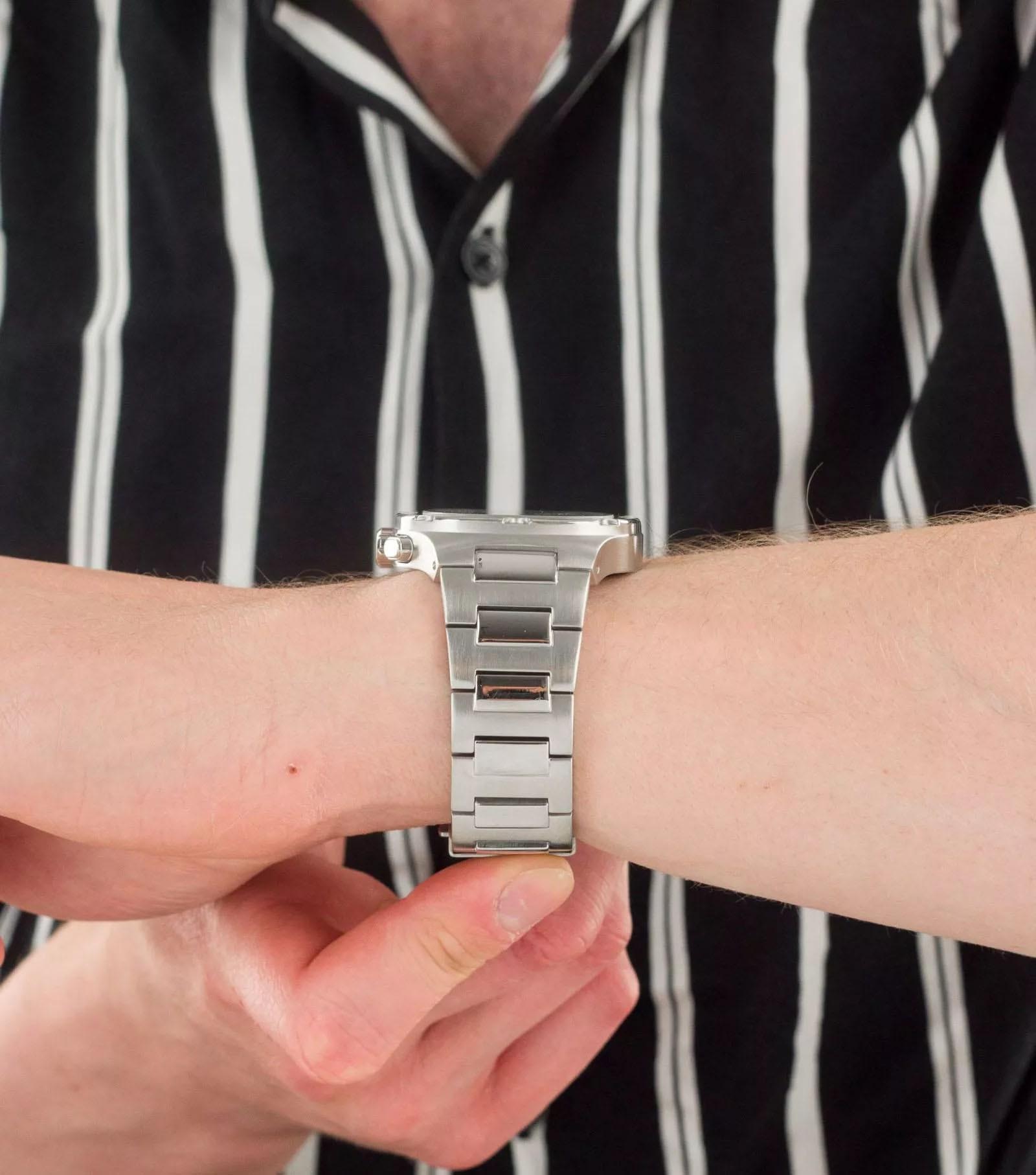 Мужские наручные часы Guess Headline GW0572G1 с минеральным стекломМинеральное стеклоМинеральное стекло представляет собой искусственно выращенный минерал кварца. Такое стекло отличается особой устойчивостью к повреждениям и царапинам. Уступает по некоторым качествам сапфировому стеклу., кварцевый механизм с высокой точностью. Класс водозащиты: 50 метров, позволит защитить корпус от случайных брызг или капель дождя. Стрелки с люминесцентным покрытиемЛюминесцентное покрытиеПозволяет считывать показания времени в темноте. Производители наносят на стрелки, часовые индексы, безель или поверхность циферблата светонакопительный состав, дающий холодное свечение.. Корпус часов и безельБезельВнешний ободок, закрепляющий стекло. В спортивных часах так называется поворотное кольцо с делениями на циферблате, выполняет роль таймера – замеряет отрезки времени на шкале. Неподвижный безель – элемент декора. Однонаправленно вращающийся безель на дайверских часах позволяет фиксировать моменты погружения и выныривания на поверхность. изготовлены из стали. Стальной браслет на раскладной застёжкеРаскладная застёжкаТакой тип застёжки используется только на браслетах из металла. Она никогда не раскрывается полностью, происходит разделение на 2 и более частей. Раскладывающая застёжка снизит вероятность потери часов к минимуму.. Рифленая заводная головка. Гильошированный циферблат. 24-х часовой формат времени, число и день недели отображаются на отдельных циферблатах. Метки в виде римских цифр и штрихов.