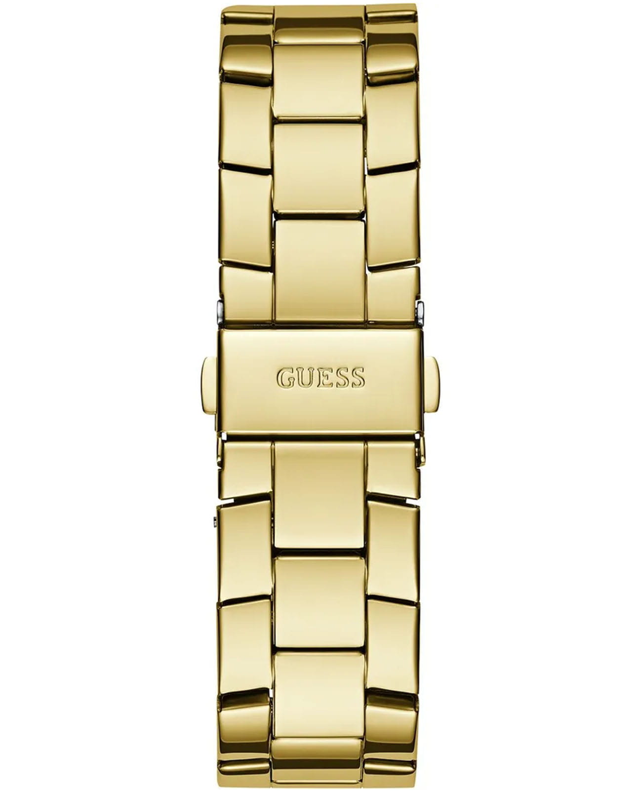 Женские наручные часы Guess Dress GW0771L2 с минеральным стекломМинеральное стеклоМинеральное стекло представляет собой искусственно выращенный минерал кварца. Такое стекло отличается особой устойчивостью к повреждениям и царапинам. Уступает по некоторым качествам сапфировому стеклу., кварцевый механизм с высокой точностью. Корпус часов изготовлен из стали с IP-покрытиемIP-покрытиеМетод ионного напыления. Демонстрирует повышенную устойчивость к истиранию, окислению и химическим веществам. Под воздействием высокого давления и температуры около 1500°C молекулы металла надёжно соединяются с частицами корпуса часов.. БезельБезельВнешний ободок, закрепляющий стекло. В спортивных часах так называется поворотное кольцо с делениями на циферблате, выполняет роль таймера – замеряет отрезки времени на шкале. Неподвижный безель – элемент декора. Однонаправленно вращающийся безель на дайверских часах позволяет фиксировать моменты погружения и выныривания на поверхность. с IP-покрытиемIP-покрытиеМетод ионного напыления. Демонстрирует повышенную устойчивость к истиранию, окислению и химическим веществам. Под воздействием высокого давления и температуры около 1500°C молекулы металла надёжно соединяются с частицами корпуса часов. украшен кристаллами. Стрелки с люминесцентным покрытиемЛюминесцентное покрытиеПозволяет считывать показания времени в темноте. Производители наносят на стрелки, часовые индексы, безель или поверхность циферблата светонакопительный состав, дающий холодное свечение.. Класс водозащиты: 50 метров, позволит защитить корпус от случайных брызг или капель дождя. Стальной браслет с IP-покрытиемIP-покрытиеМетод ионного напыления. Демонстрирует повышенную устойчивость к истиранию, окислению и химическим веществам. Под воздействием высокого давления и температуры около 1500°C молекулы металла надёжно соединяются с частицами корпуса часов. на раскладной застёжкеРаскладная застёжкаТакой тип застёжки используется только на браслетах из металла. Она никогда не раскрывается полностью, происходит разделение на 2 и более частей. Раскладывающая застёжка снизит вероятность потери часов к минимуму..