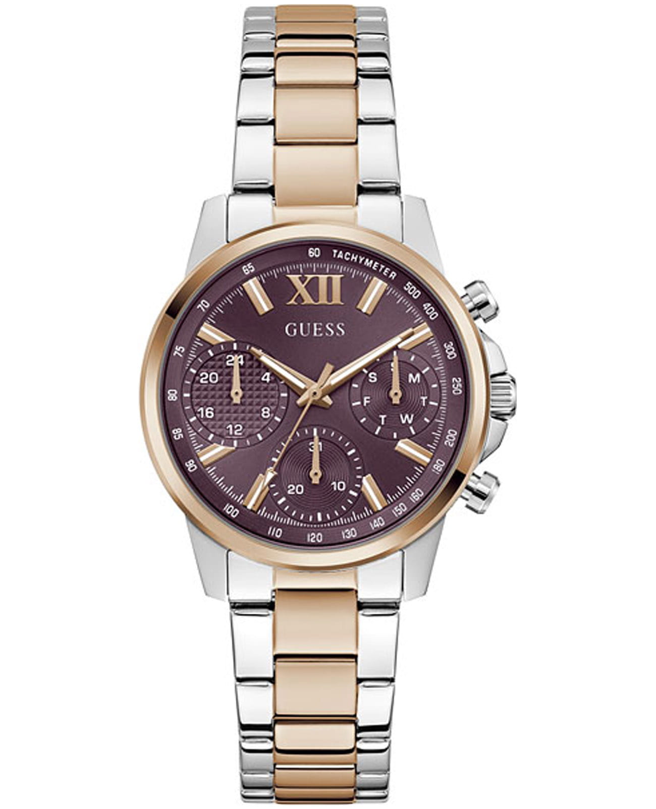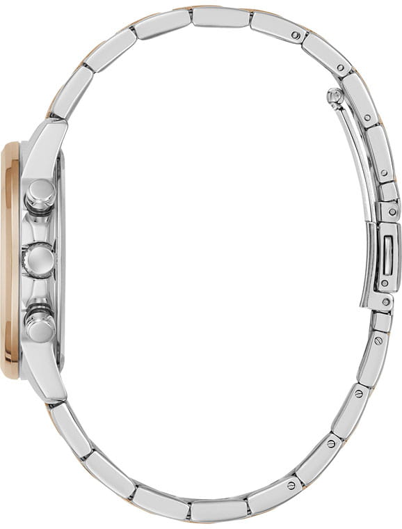Элегантные женские наручные часы Guess GW0933L5 сочетают в себе стиль и функциональность. Эти часы оснащены точным кварцевым механизмом, что гарантирует надежность и долговечность. Корпус часов выполнен из прочной нержавеющей стали серебристого цвета, диаметром 36 мм. Неподвижный безельБезельВнешний ободок, закрепляющий стекло. В спортивных часах так называется поворотное кольцо с делениями на циферблате, выполняет роль таймера – замеряет отрезки времени на шкале. Неподвижный безель – элемент декора. Однонаправленно вращающийся безель на дайверских часах позволяет фиксировать моменты погружения и выныривания на поверхность. с PVD-покрытиемPVDУльтратонкое покрытие наносится в технике вакуумного напыления, сочетает в себе нитрид титана особой прочности со слоем золота или оксида хрома. Несёт в себе декоративную или защитную функцию. цвета розового золота придает роскошный вид. Циферблат Циферблат дополнен тахиметромТахиметрРазмеченная шкала, располагается на ободке или безеле часов. Тахиметр позволяет рассчитать скорость на определённом участке пути, расстояние измеряется в километрах или милях.. Часы оснащены стальным браслетом с частичным PVD-покрытиемPVDУльтратонкое покрытие наносится в технике вакуумного напыления, сочетает в себе нитрид титана особой прочности со слоем золота или оксида хрома. Несёт в себе декоративную или защитную функцию. на раскладной застёжкеРаскладная застёжкаТакой тип застёжки используется только на браслетах из металла. Она никогда не раскрывается полностью, происходит разделение на 2 и более частей. Раскладывающая застёжка снизит вероятность потери часов к минимуму., которая обеспечивает комфортное прилегание к запястью и надежную фиксацию. Минеральное стеклоМинеральное стеклоМинеральное стекло представляет собой искусственно выращенный минерал кварца. Такое стекло отличается особой устойчивостью к повреждениям и царапинам. Уступает по некоторым качествам сапфировому стеклу. защищает циферблат от царапин и повреждений, сохраняя его безупречный вид. 12-ти и 24-х часовой формат. Рифленая заводная головка с защитой. Водозащита 30WR гарантирует защиту от случайных брызг и дождя, что делает эти часы практичным аксессуаром для повседневной жизни.  Люминесцентное покрытиеЛюминесцентное покрытиеПозволяет считывать показания времени в темноте. Производители наносят на стрелки, часовые индексы, безель или поверхность циферблата светонакопительный состав, дающий холодное свечение. на стрелках и метках обеспечивает отличную видимость в темноте. Guess – это не просто аксессуар, это заявление о вашем безупречном вкусе и стремлении к совершенству.