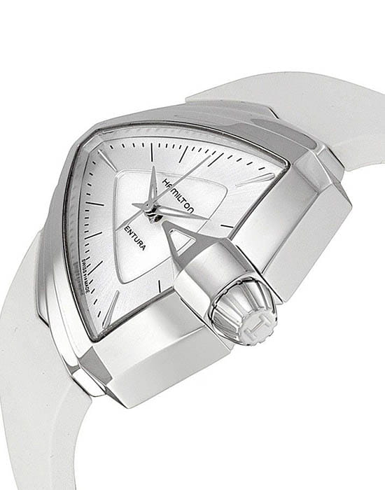 Женские швейцарские часы Hamilton Ventura H24251391, кварцевый механизм с высокой точностью. Сапфировое стеклоСапфировое стеклоПрочный и надёжный материал из кристалла сапфира синтетического происхождения, характеризующийся особой твёрдостью и устойчивостью к царапинам и повреждениям. устойчивое к появлению царапин, обладающее высокой прозрачностью. Класс водозащиты: 50 метров, позволит защитить корпус от случайных брызг или капель дождя. Корпус часов изготовлен из нержавеющей стали.